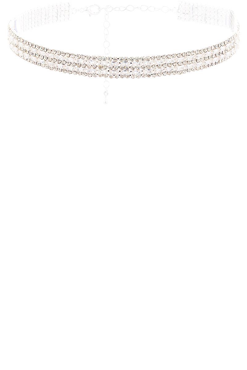 CRYSTAL RHINESTONE BAGUETTE 5 LINE CHOKER NECKLACE