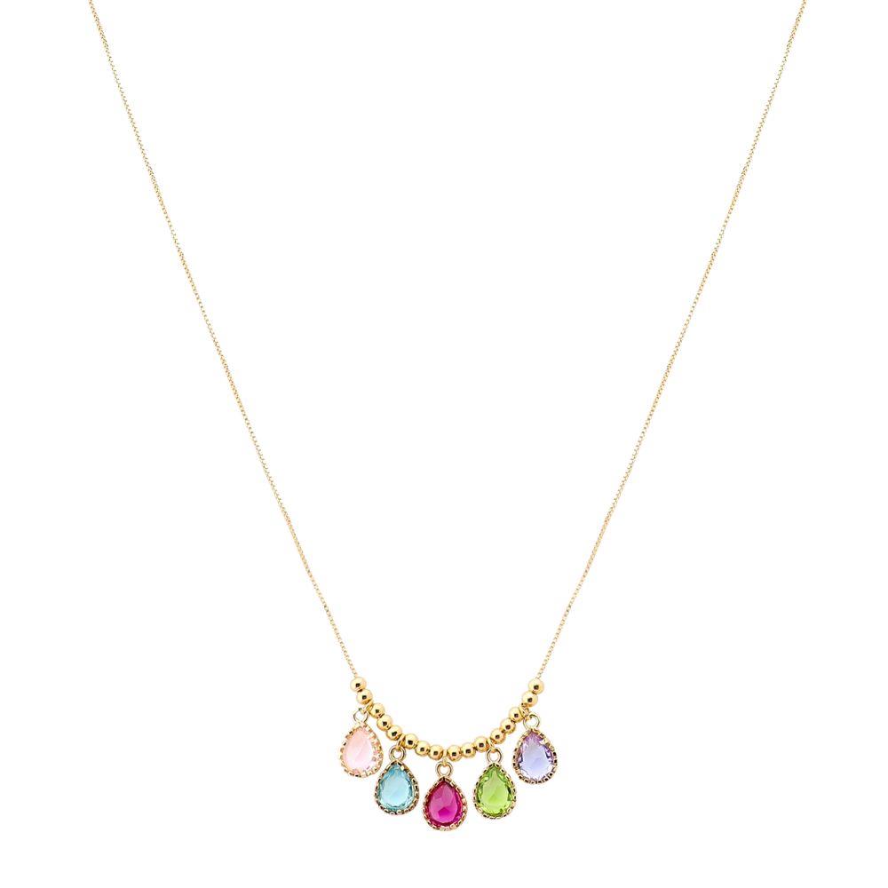 GOLD DIPPED CZ BALL STATION CHAIN NECKLACE