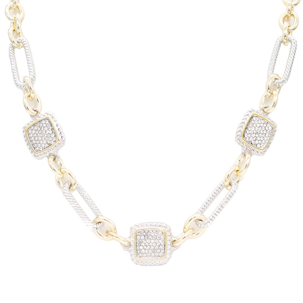 14K GOLD PLATED TWO TONE CUBIC ZIRCONIA TOGGLED NECKLACE