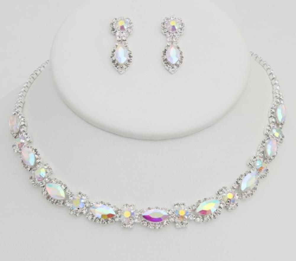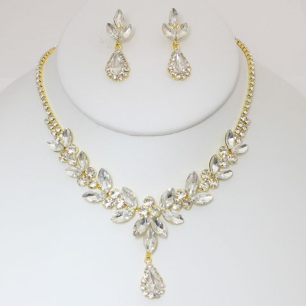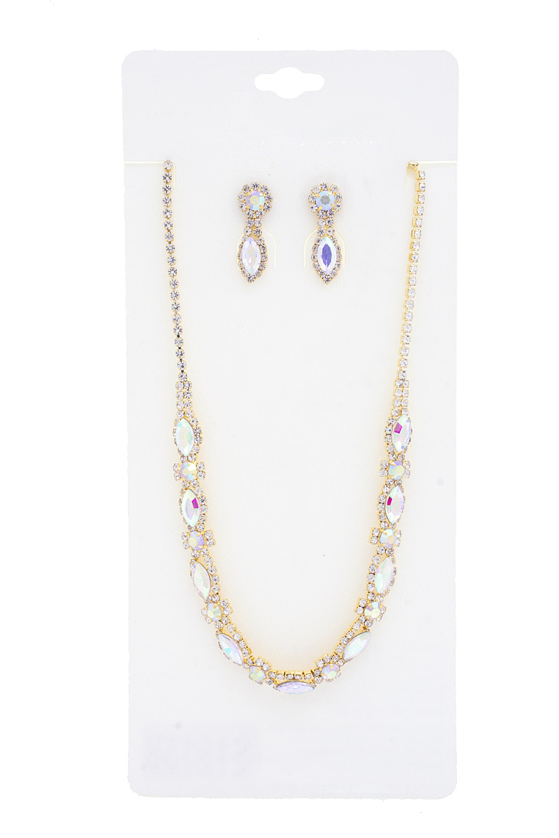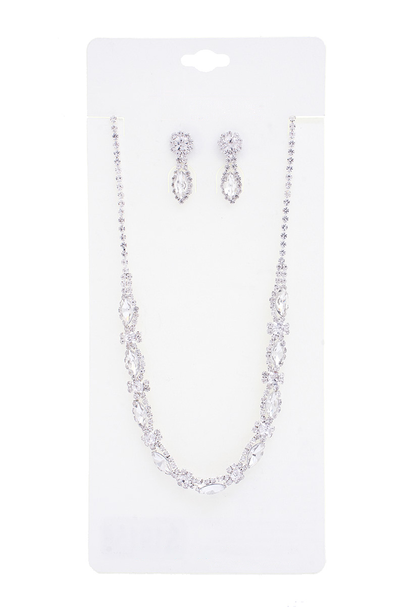 RHINESTONE TEARDROP MARQUISE 2 PC NECKLACE