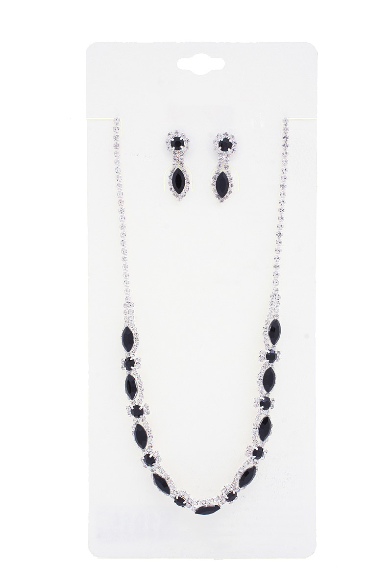 RHINESTONE OVAL DROP NECKLACE EARRING SET