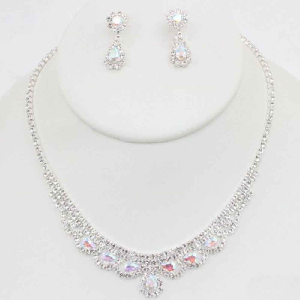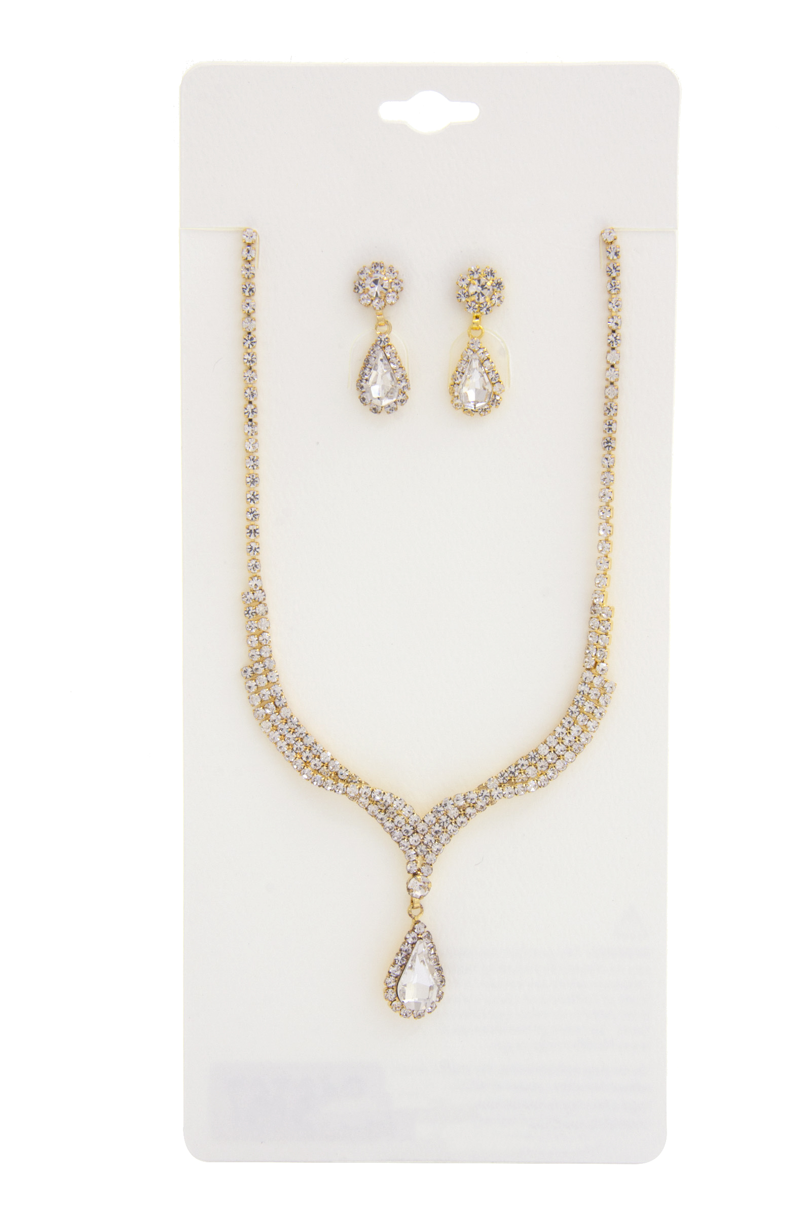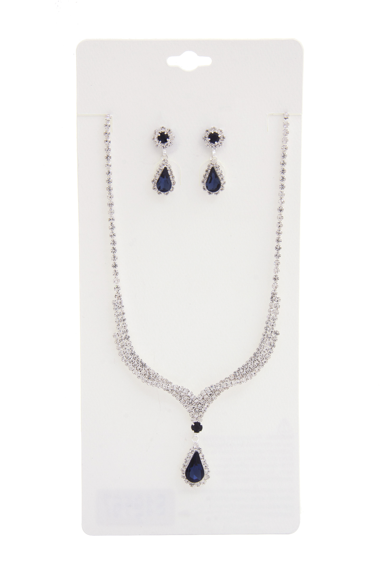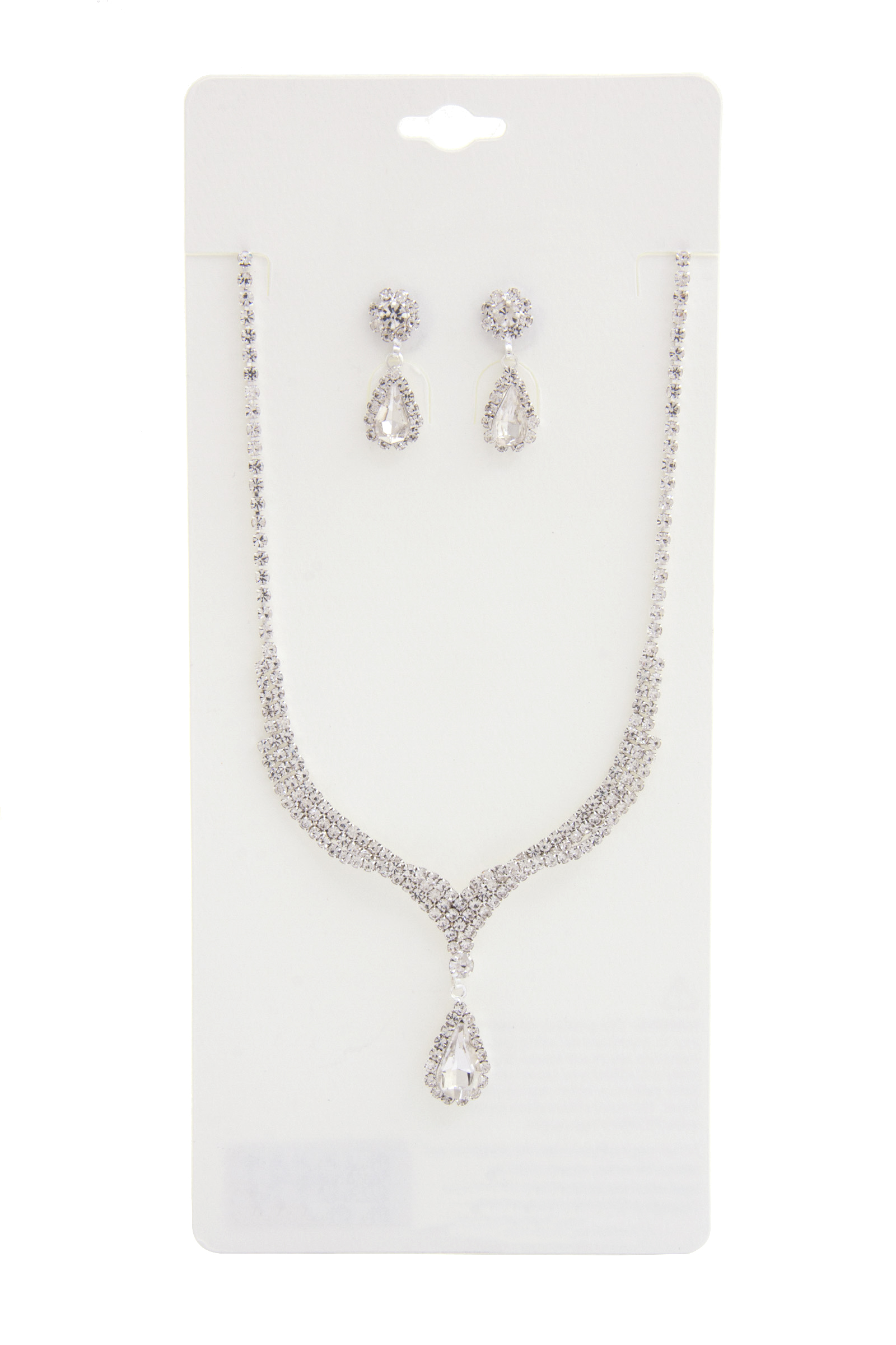 RHINESTONE TEARDROP PENDANT NECKLACE EARRING SET