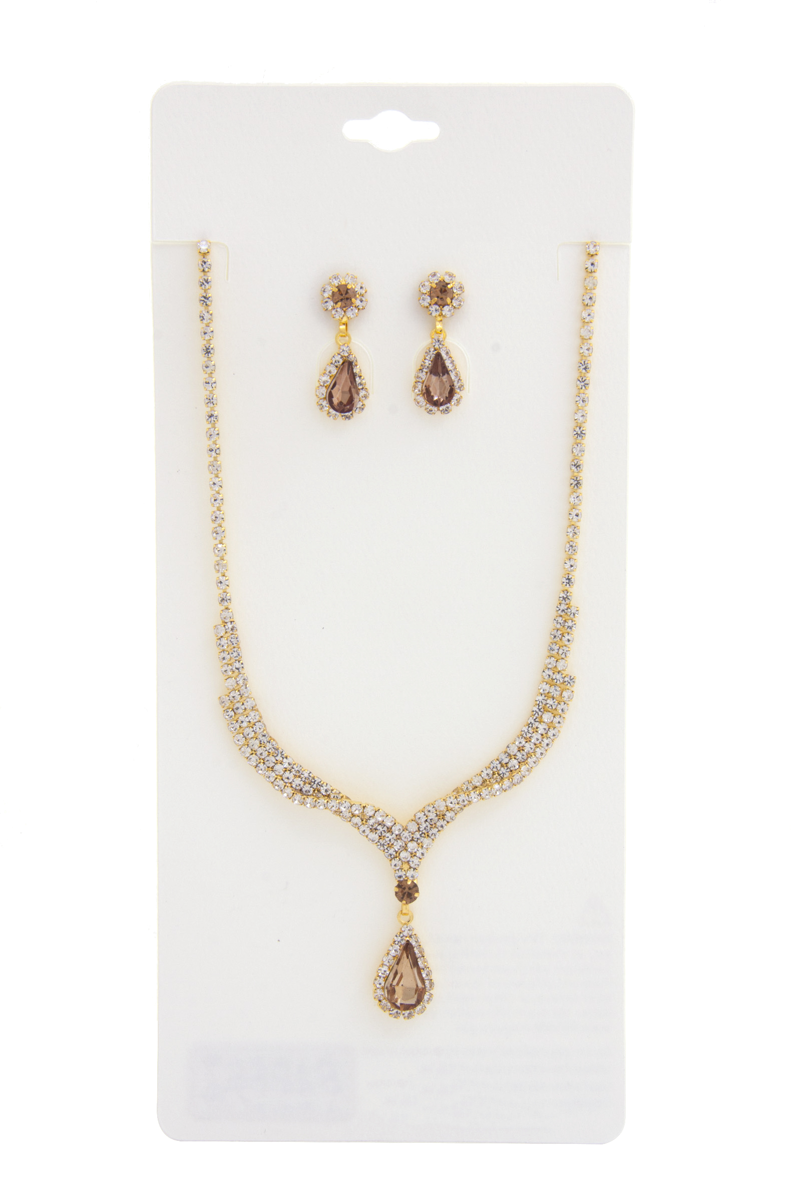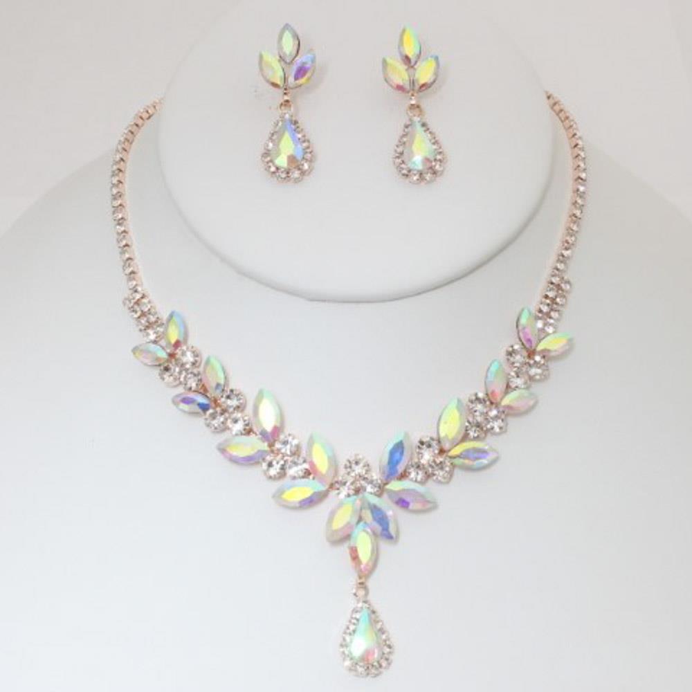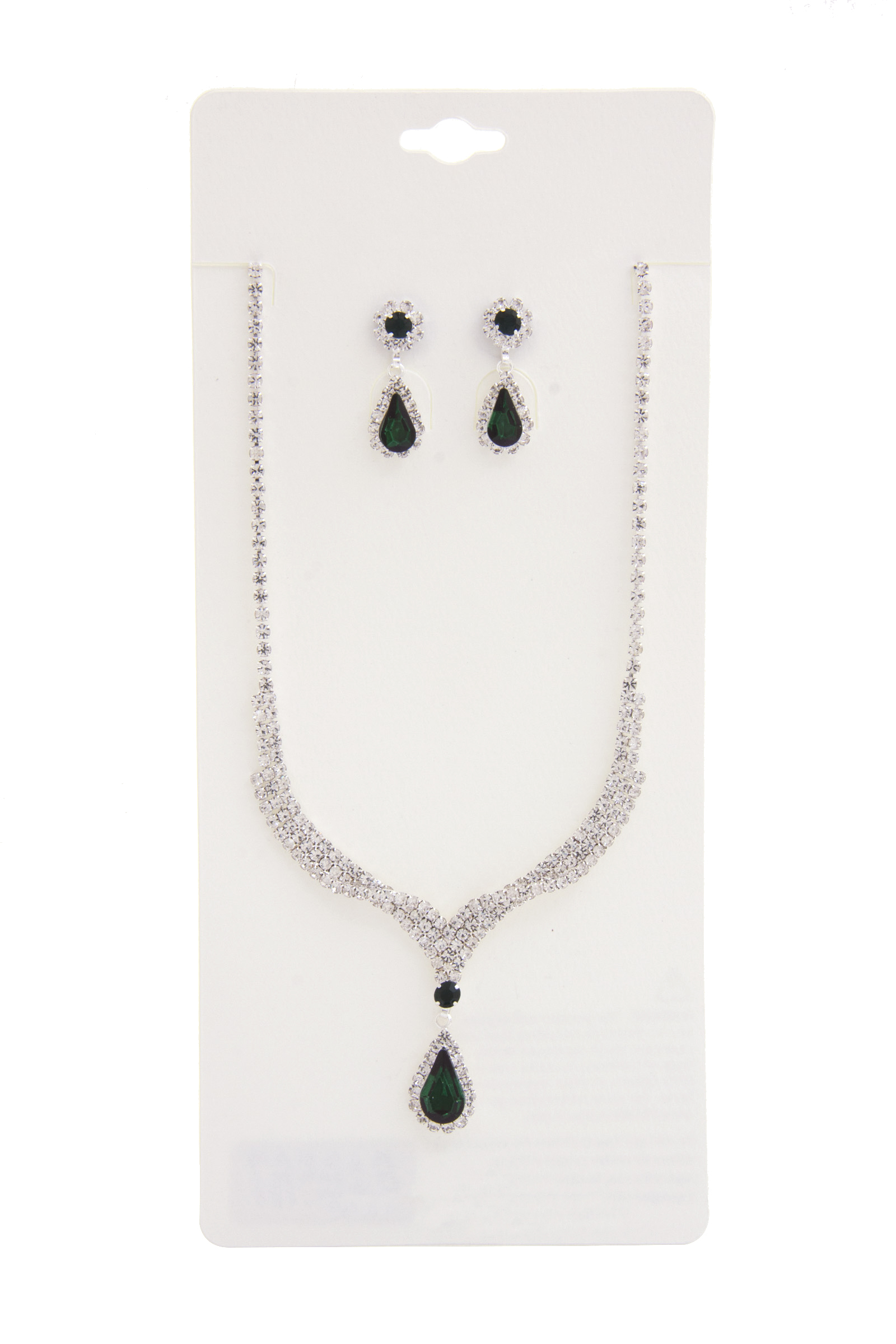 CRYSTAL STONE TEARDROP ORNAMENT NECKLACE EARRING SET