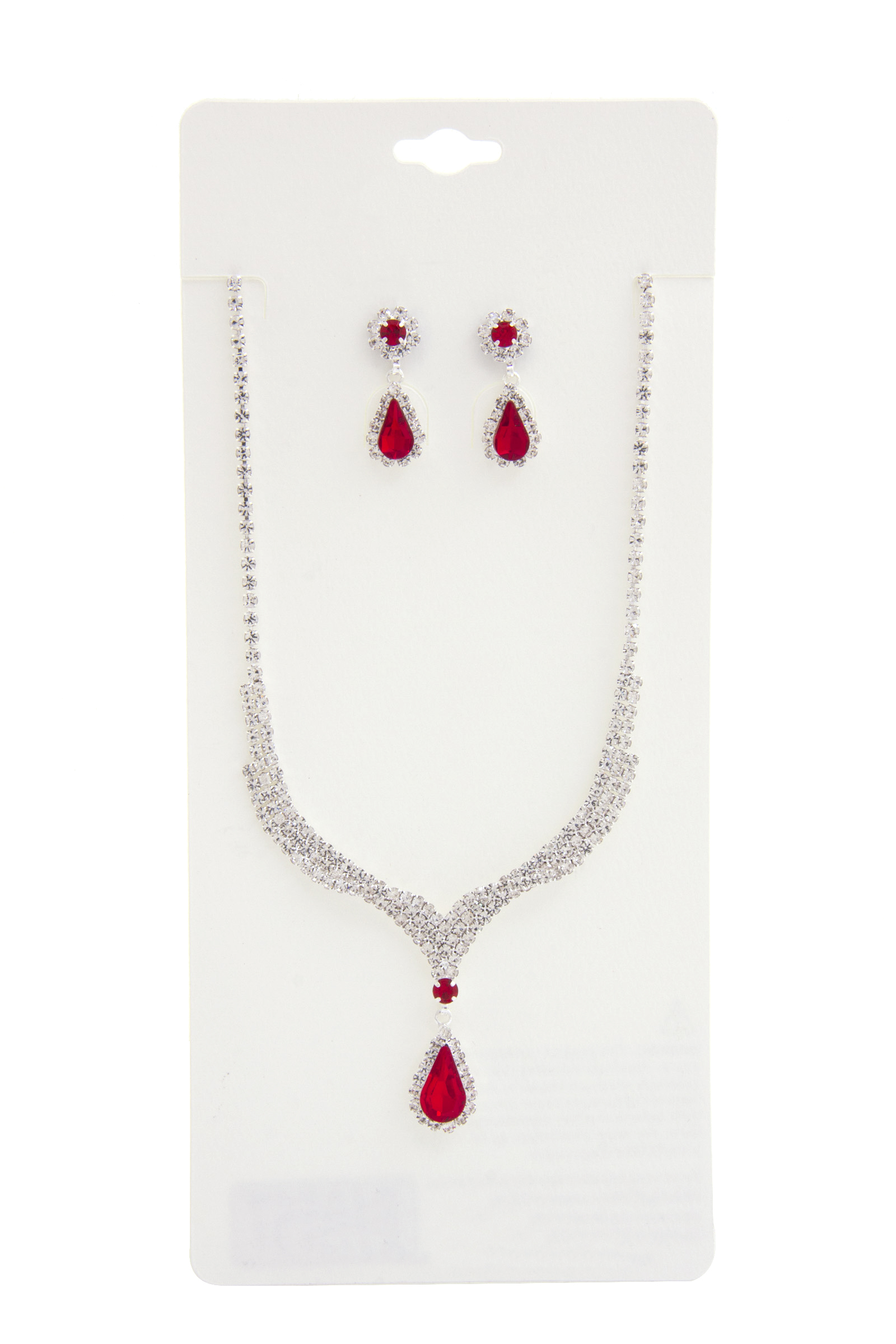 CRYSTAL STONE TEARDROP PENDANT NECKLACE EARRING SET
