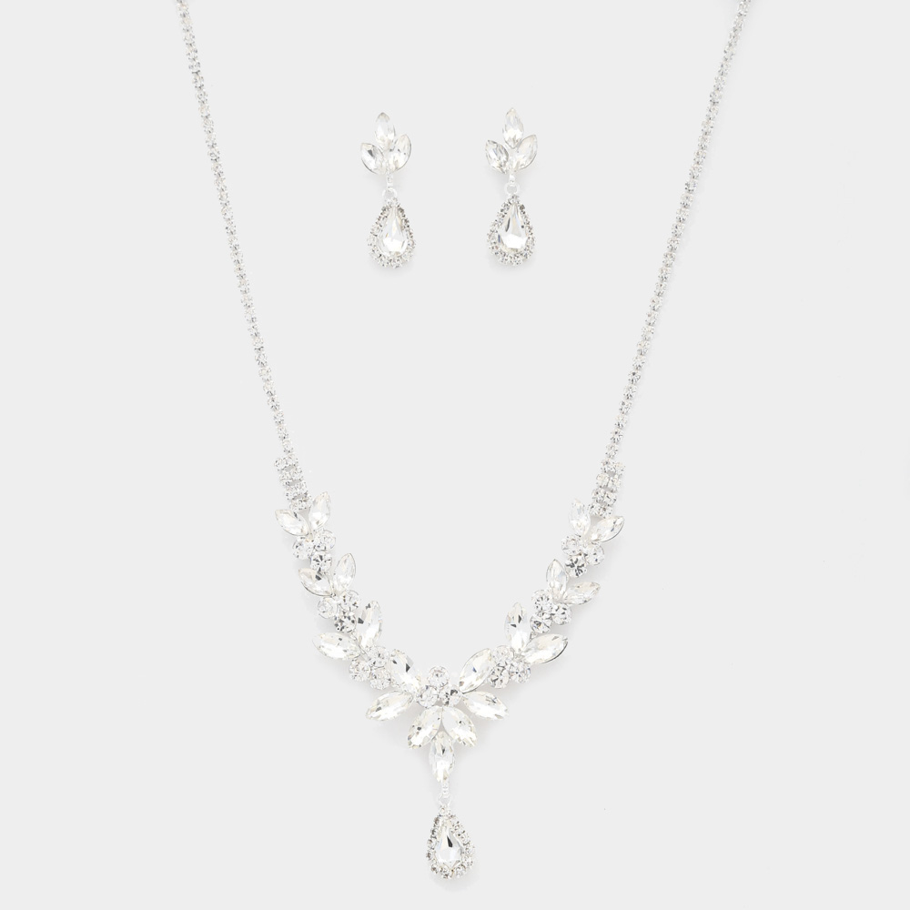 RHINESTONE FLORAL MARQUISE STATEMENT NECKLACE EARRING SET