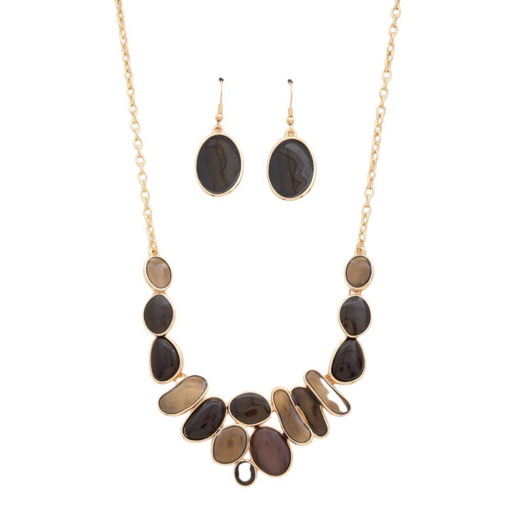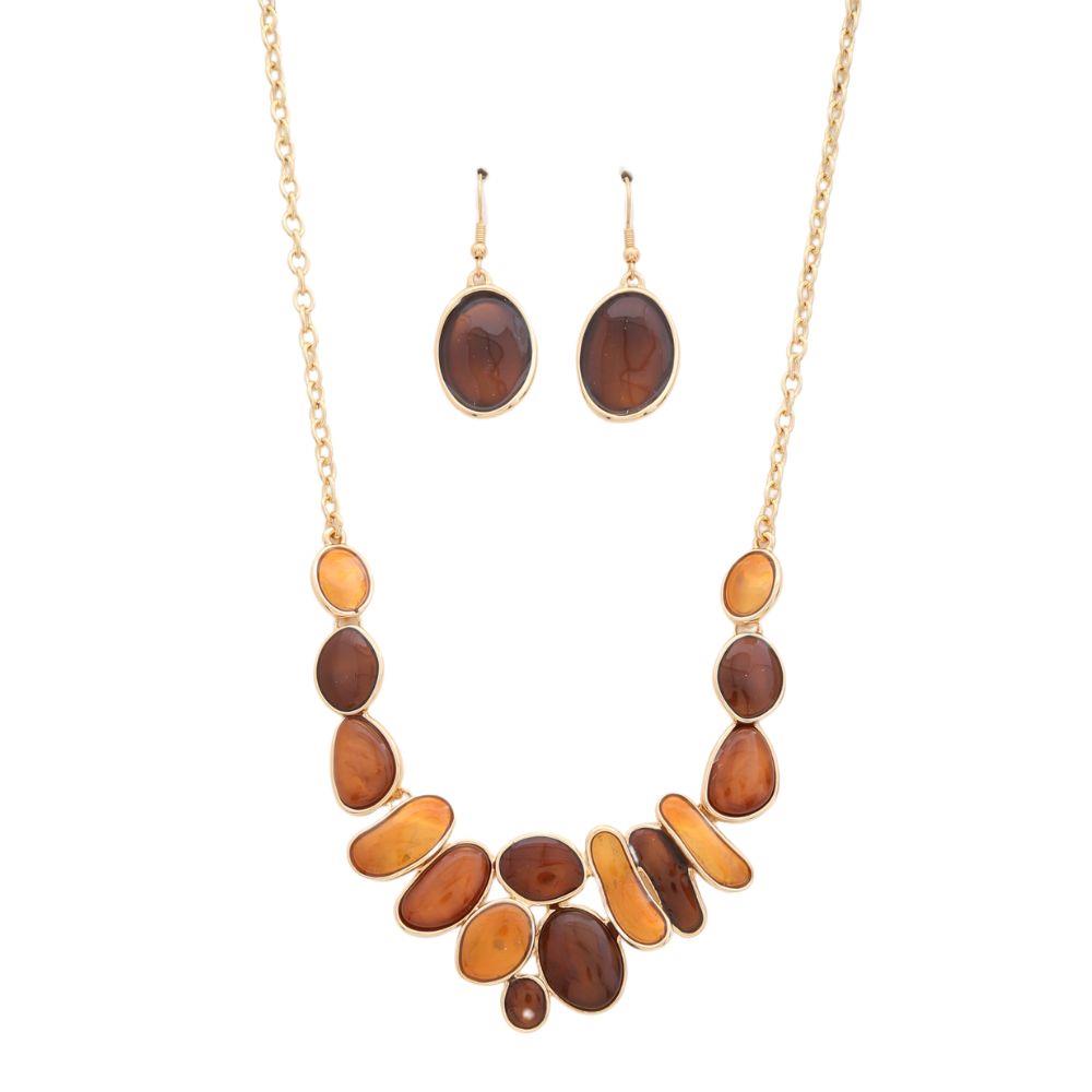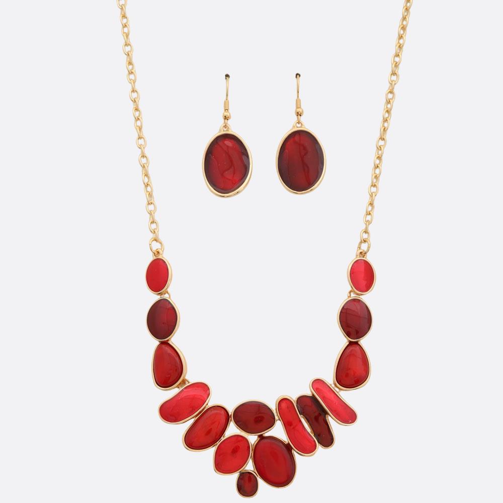 TEARDROP RHINESTONE RESIN MIXED ACCENT NECKLACE EARRING SET