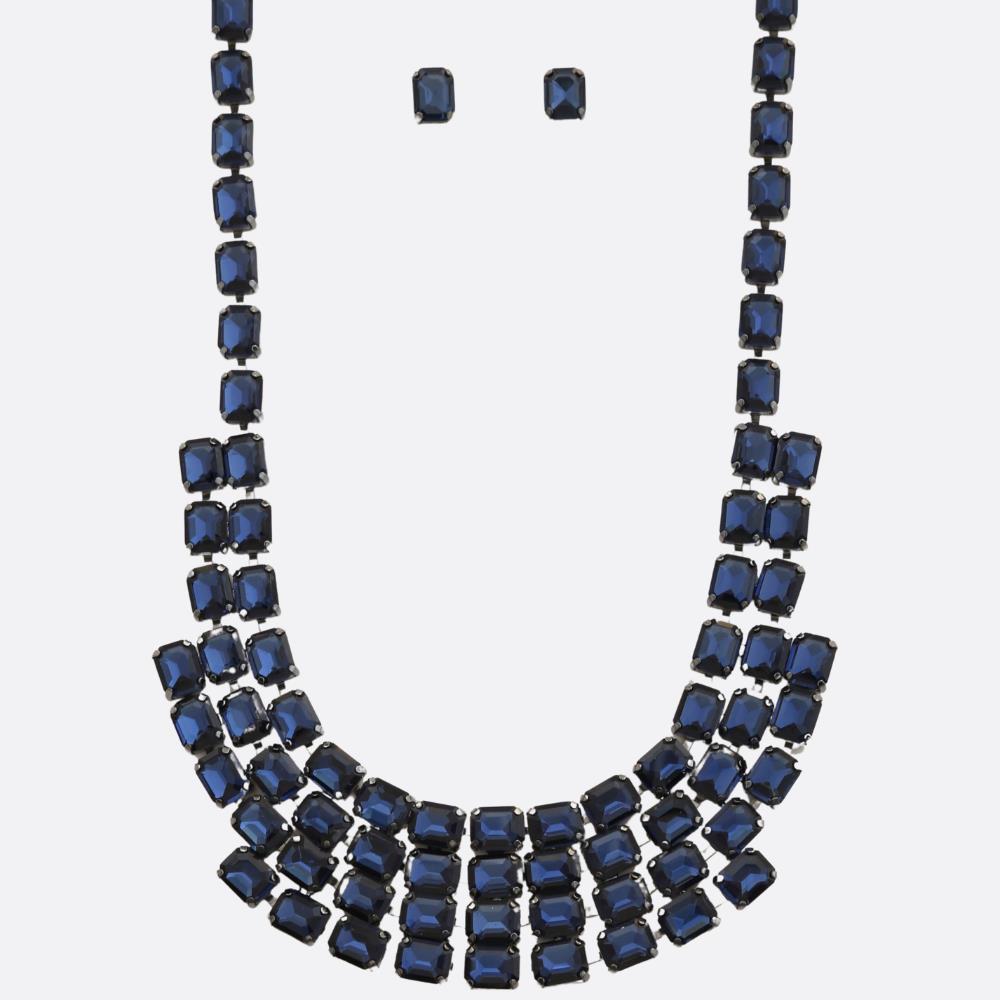 CRYSTAL STONE CLUSTER DROP NECKLACE EARRING SET