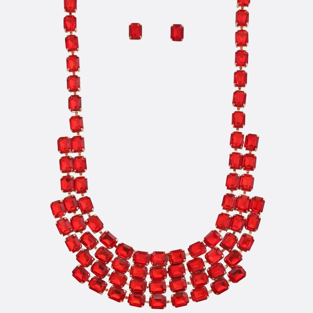CRYSTAL STONE ROUND NECKLACE EARRING SET