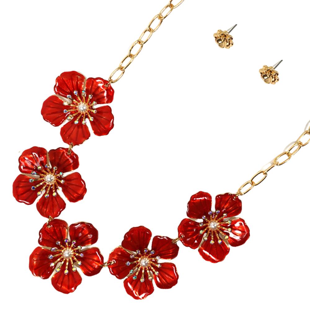 TEXTURED METAL FLORAL STATEMENT NECKLACE EARRING SET