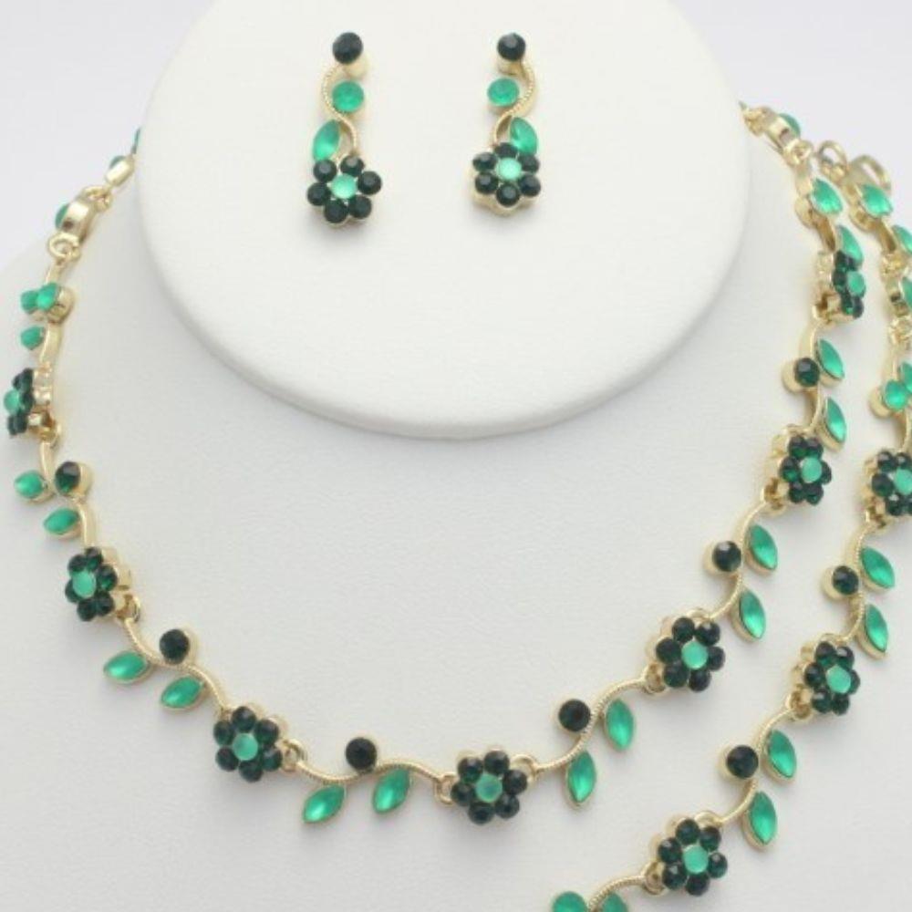 RHINESTONE FLORAL LEAF NECKLACE EARRING SET