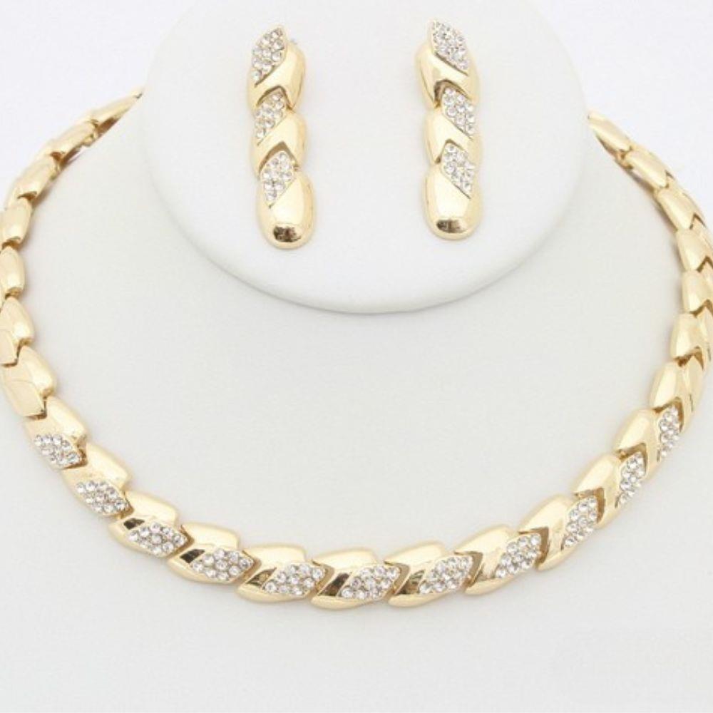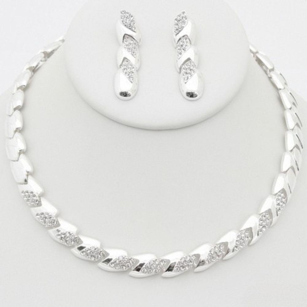 RHINESTONE WAVE NECKLACE EARRING BRACELET SET