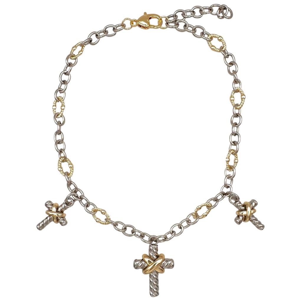 - TWO TONE TRIPLE CROSS LINK NECKLACE
