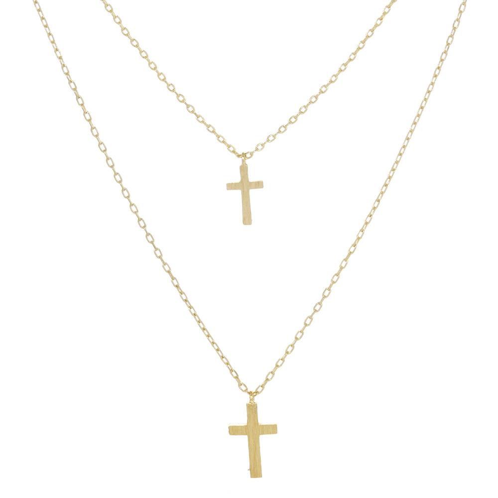 DOUBLE CROSS CHARM LAYERED NECKLACE