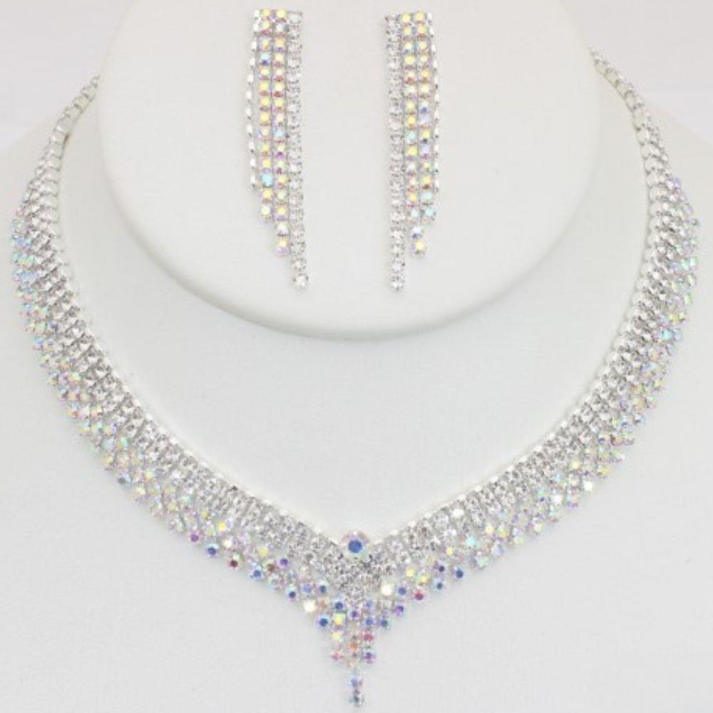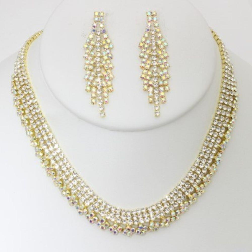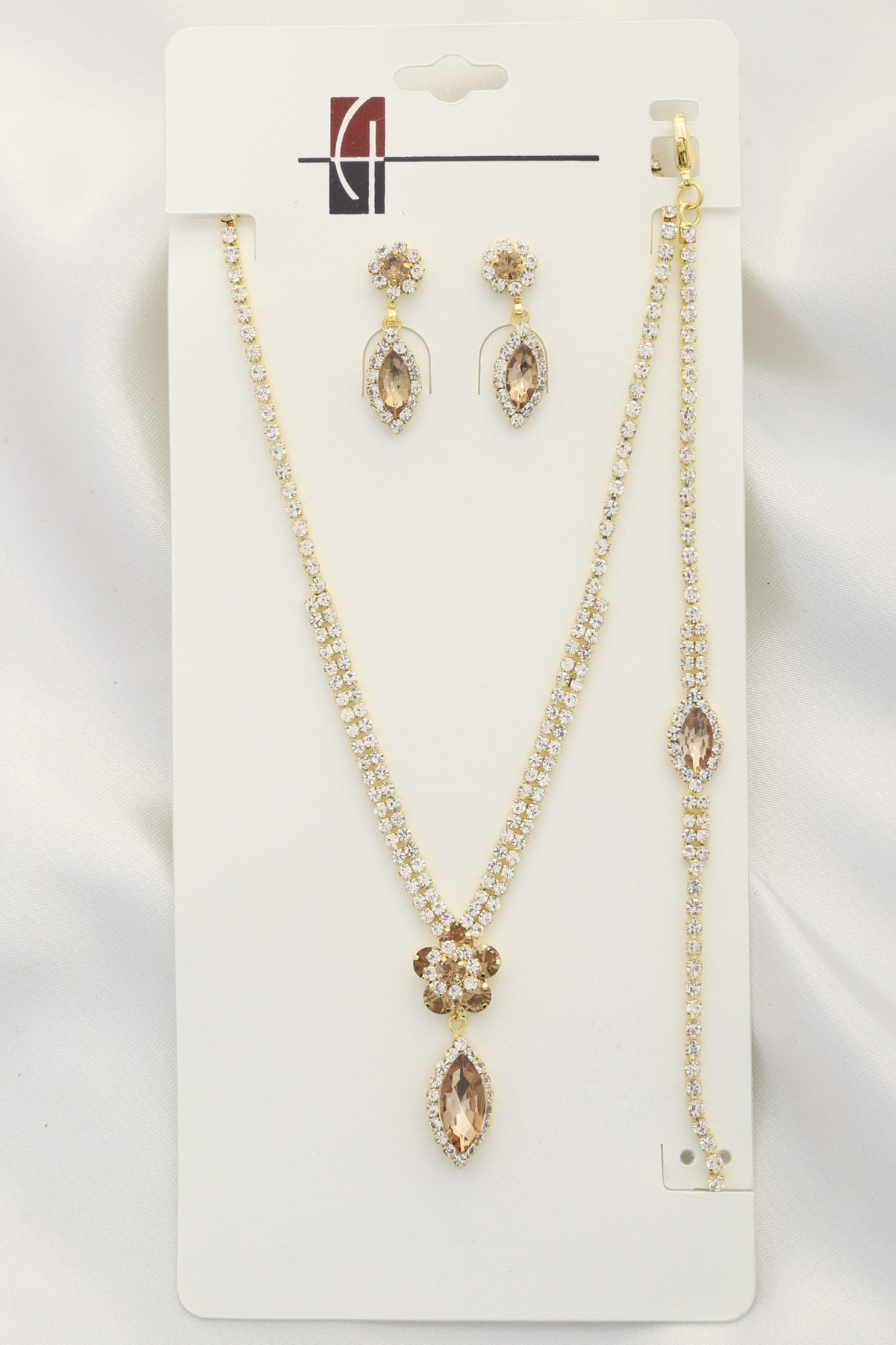 RHINESTONE NECKLACE EARRING BRACELET SET