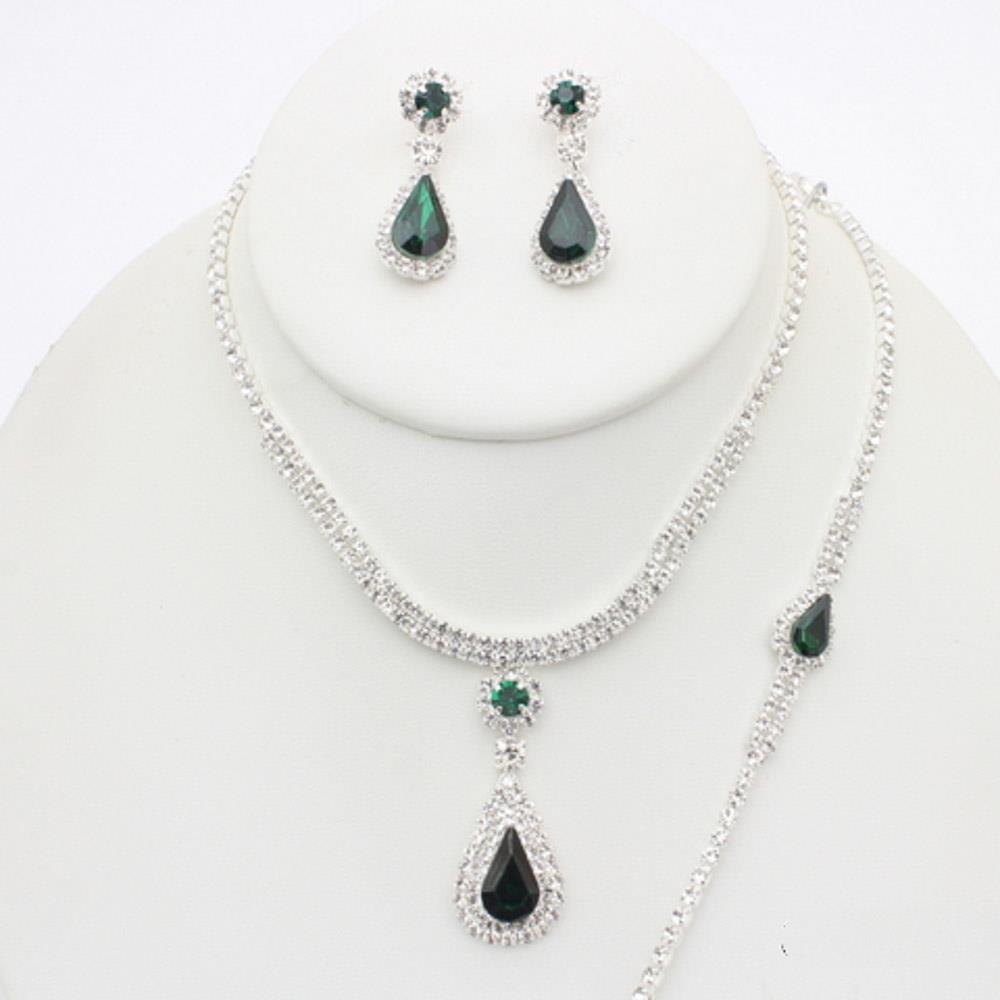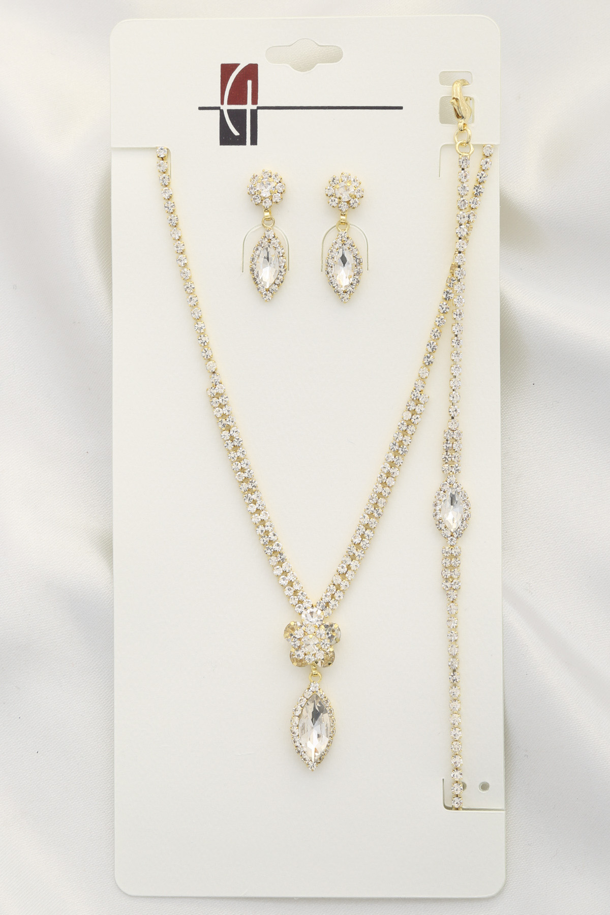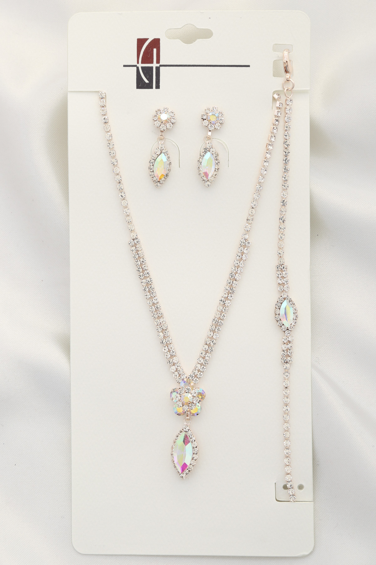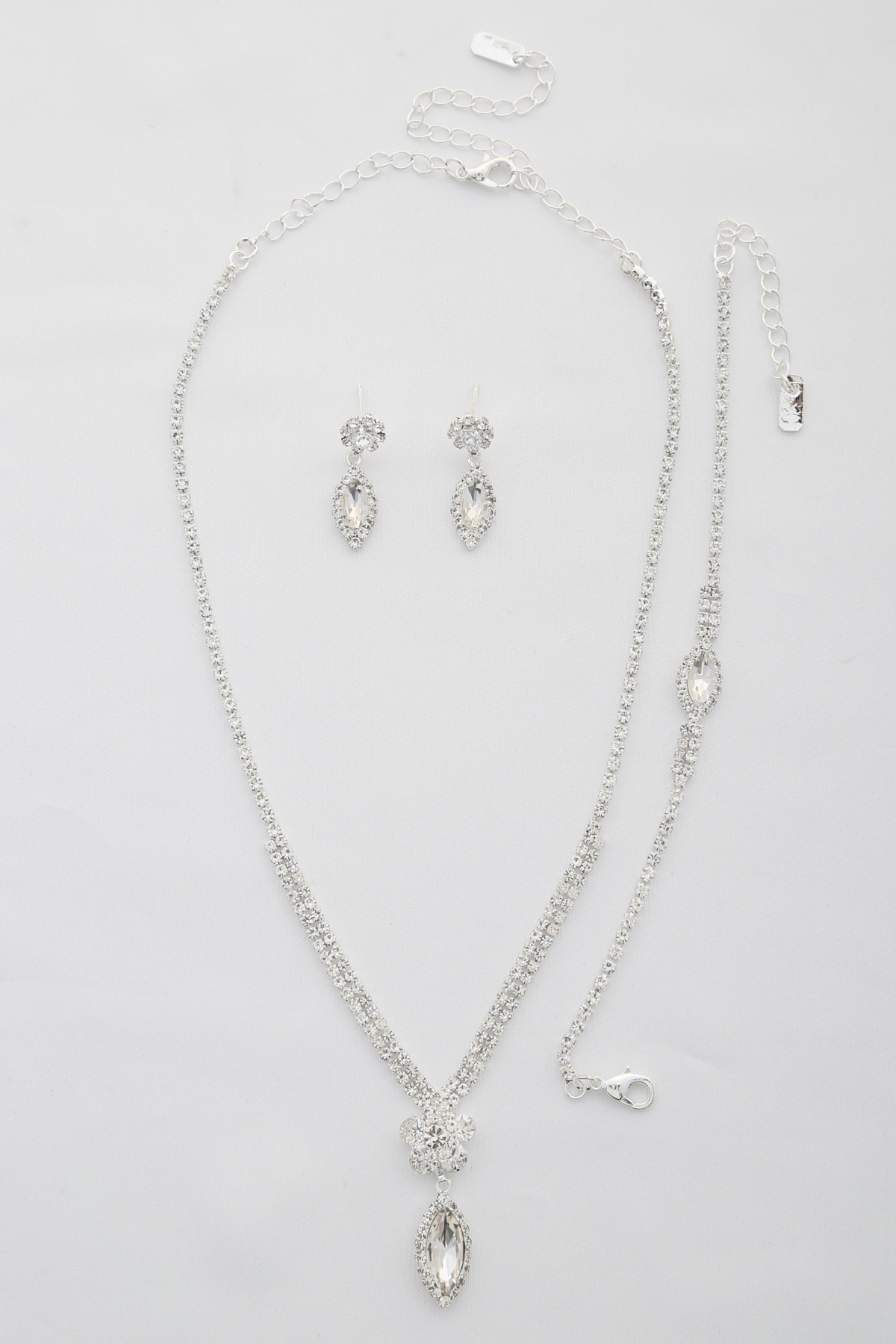 RHINESTONE TEARDROP NECKLACE EARRING BRACELET SET