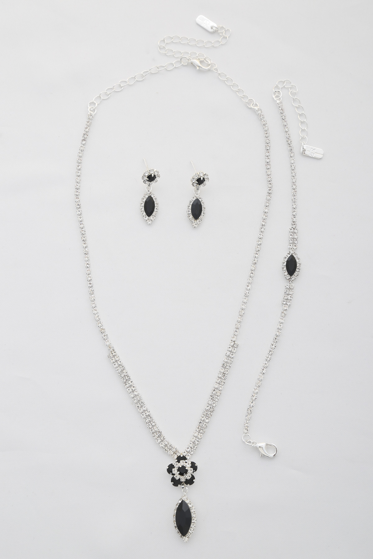 RHINESTONE TEARDROP LACE NECKLACE EARRING BRACELET 3PC SET