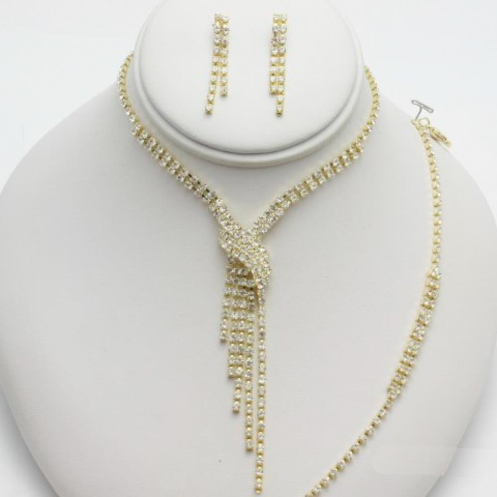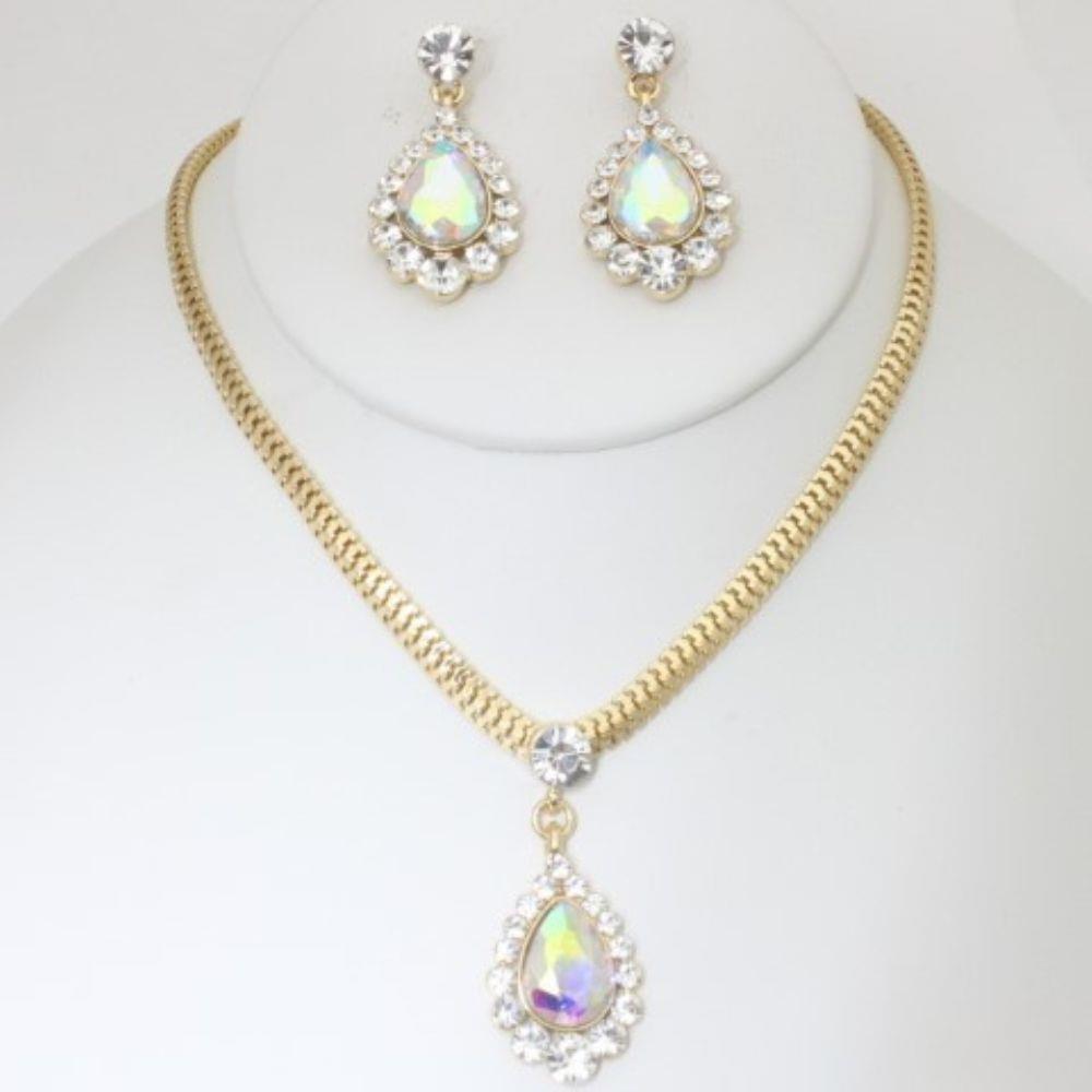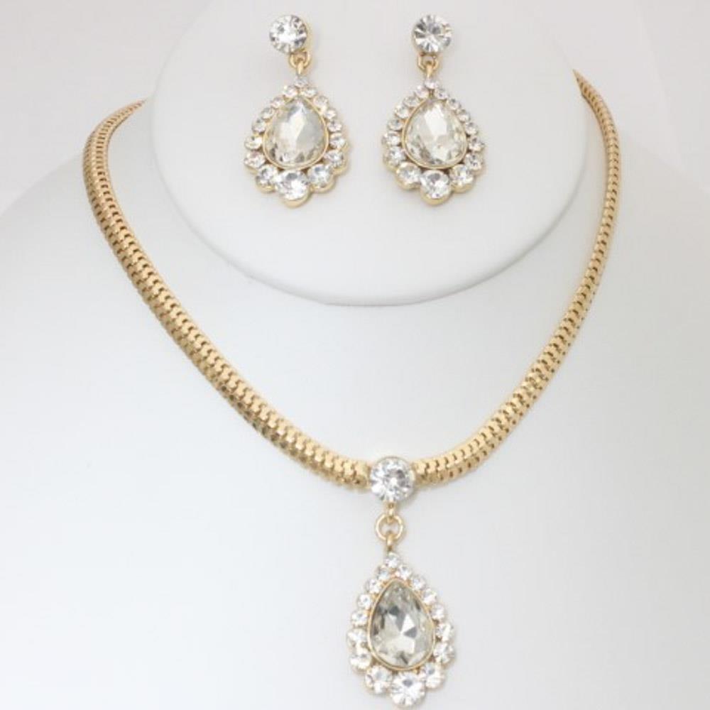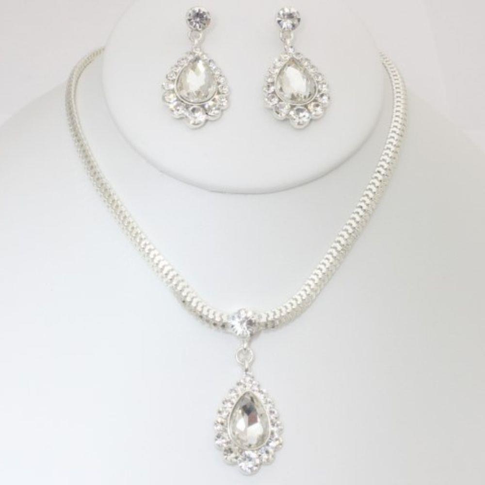 RHINESTONE TEARDROP NECKLACE EARRING SET