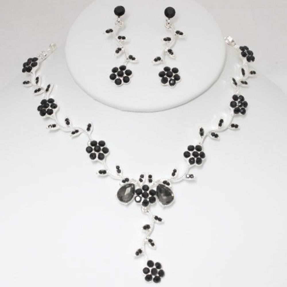 RHINESTONE FLORAL STATEMENT NECKLACE EARRING SET