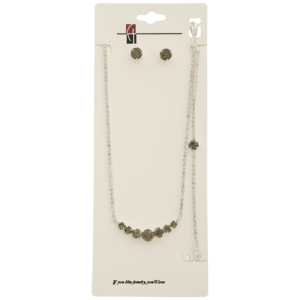 2 LAYERED TIFFANY CHAIN & 5MM CRYSTAL STONE LAYERED SHORT NECKLACE EARRING SET