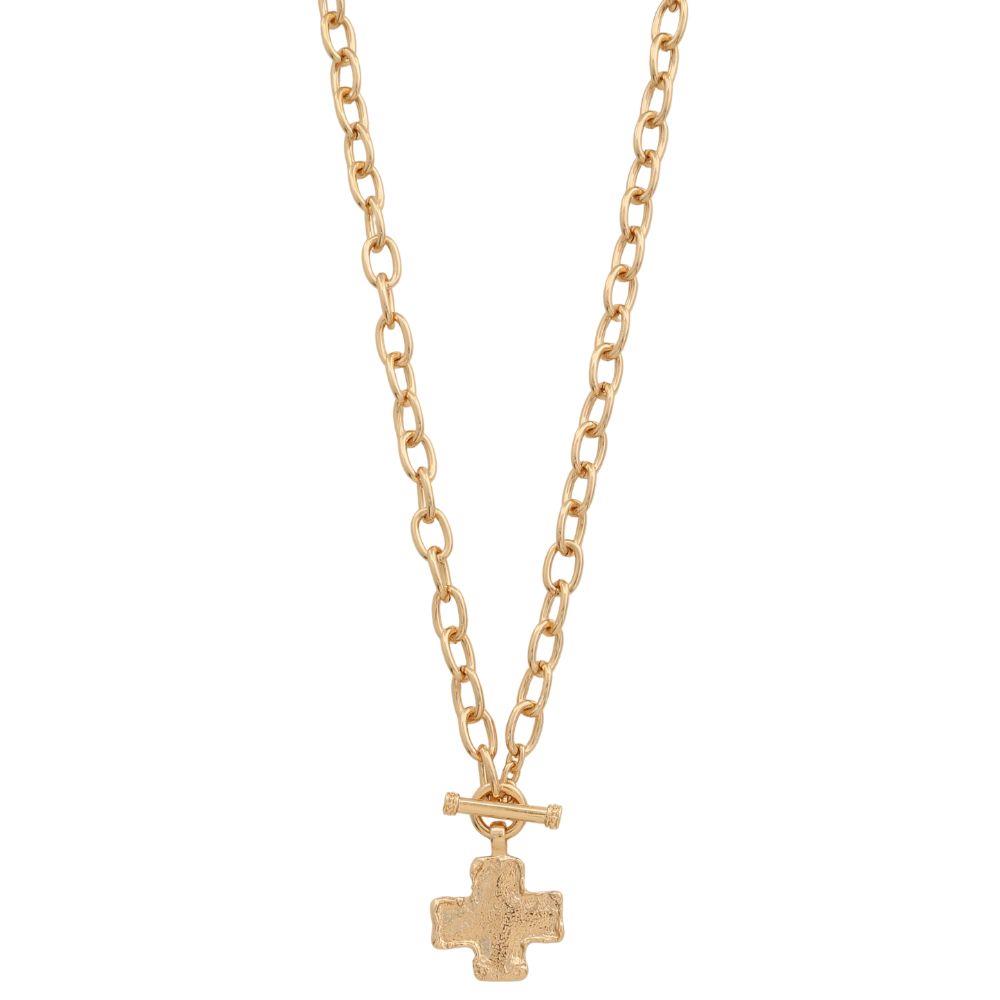TWO TONE CROSS TOGGLE CLASP METAL NECKLACE