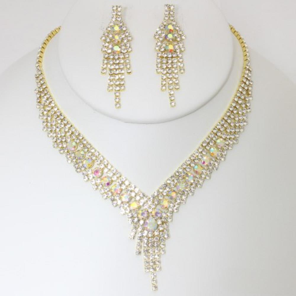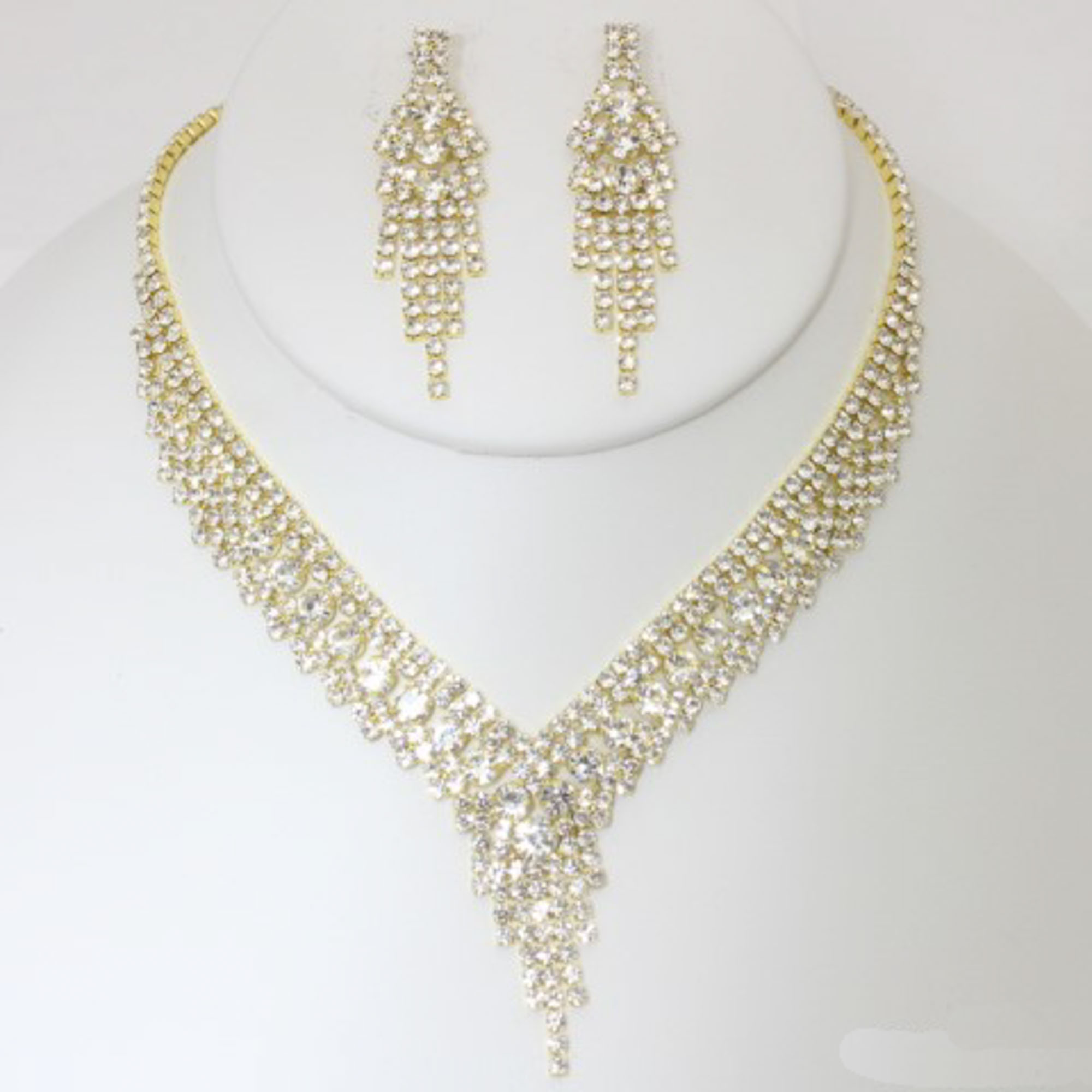 CRYSTAL RHINESTONE NECKLACE EARRING SET