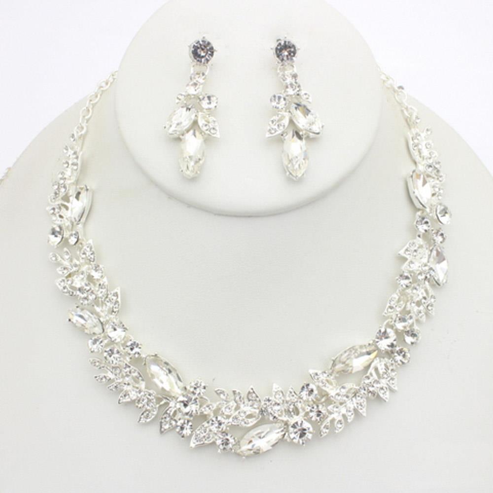 RHINESTONE MARQUISE NECKLACE EARRING SET
