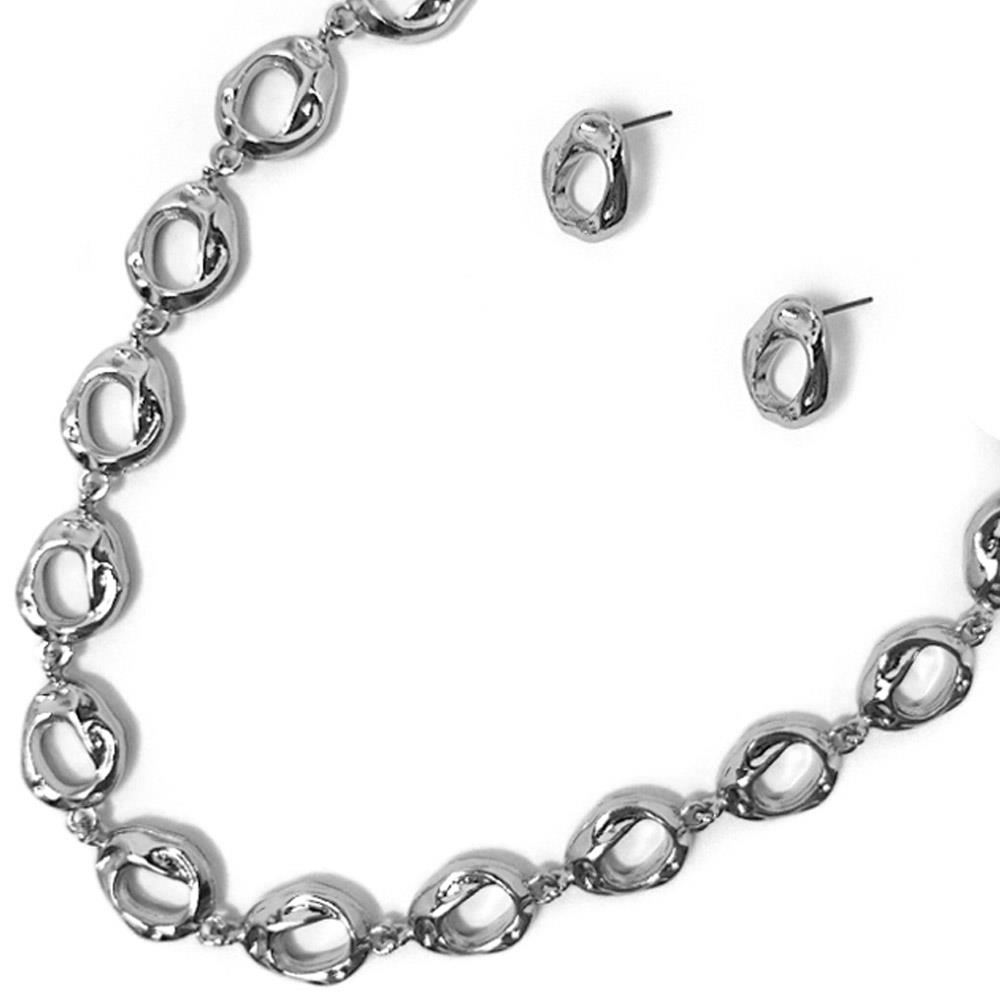 METAL OVAL CHAIN NECKLACE EARRING SET