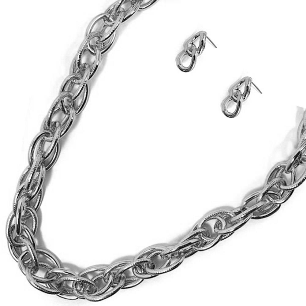METAL OVAL LINK CHAIN NECKLACE EARRING SET