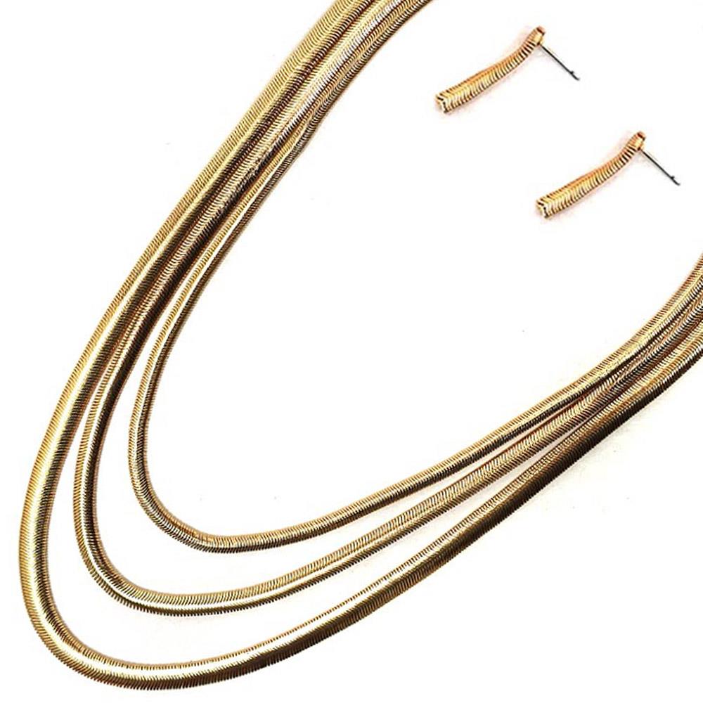 MULTI LAYERED METAL CHAIN NECKLACE EARRING SET