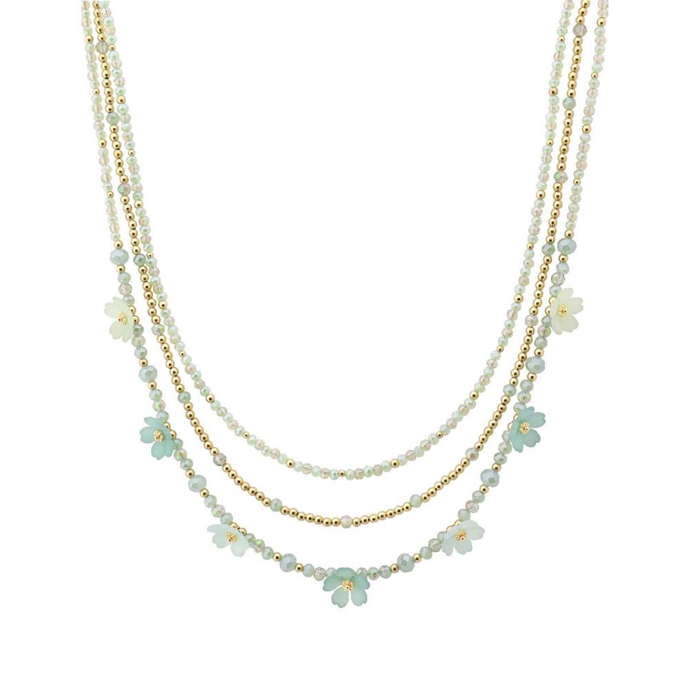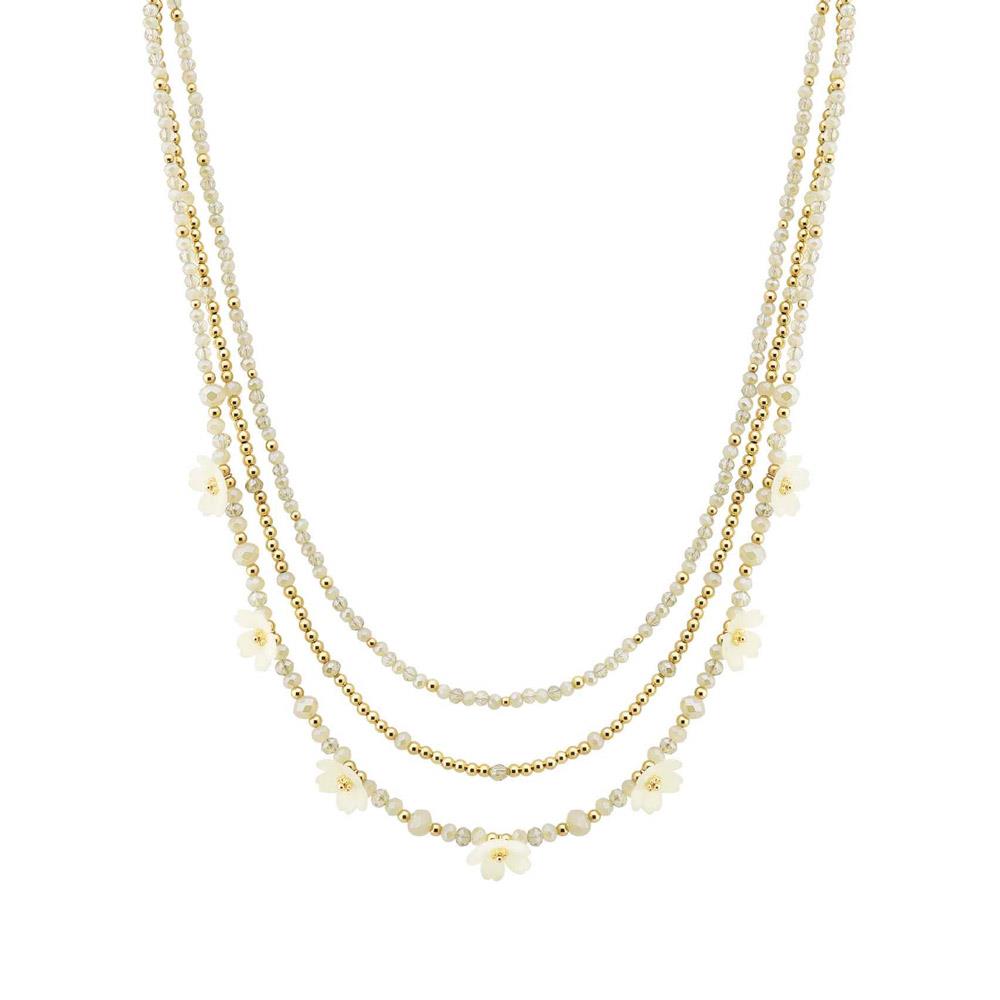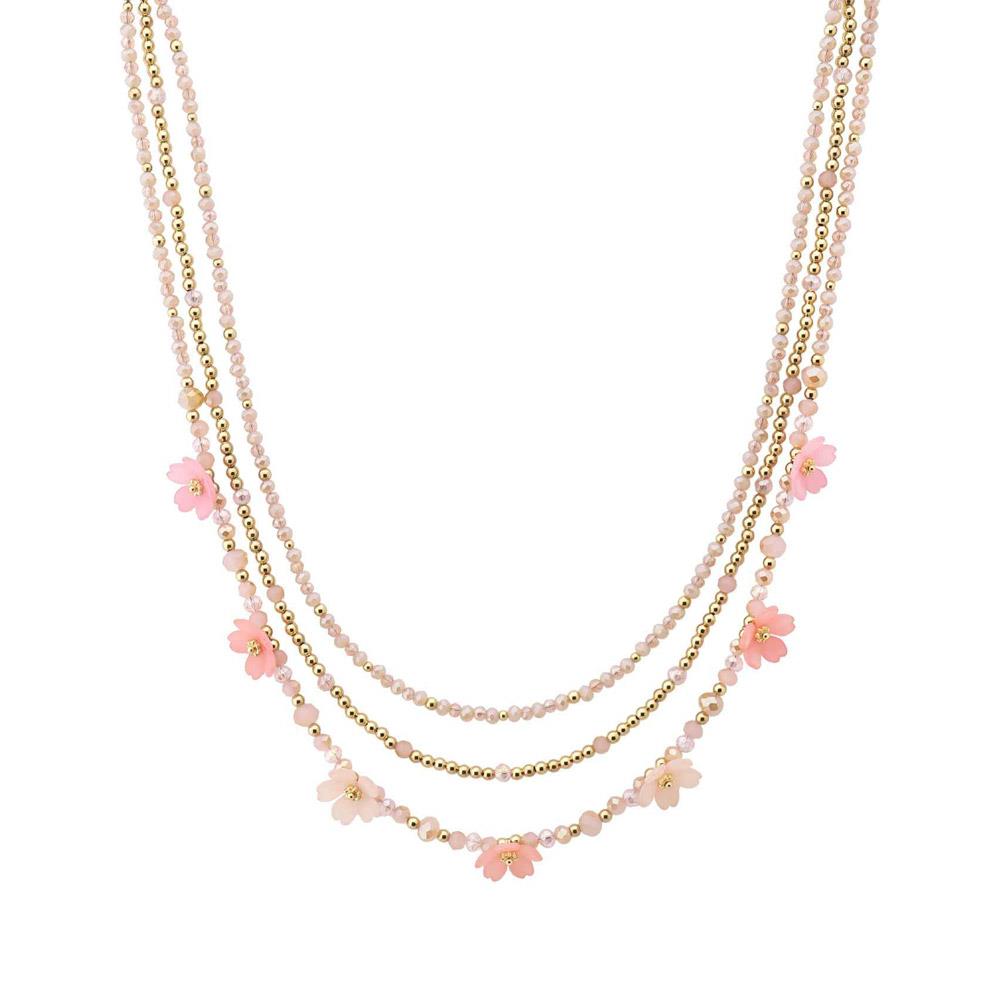 FLOWER MULTI CHARM STRAND BEADED LAYERED NECKLACE