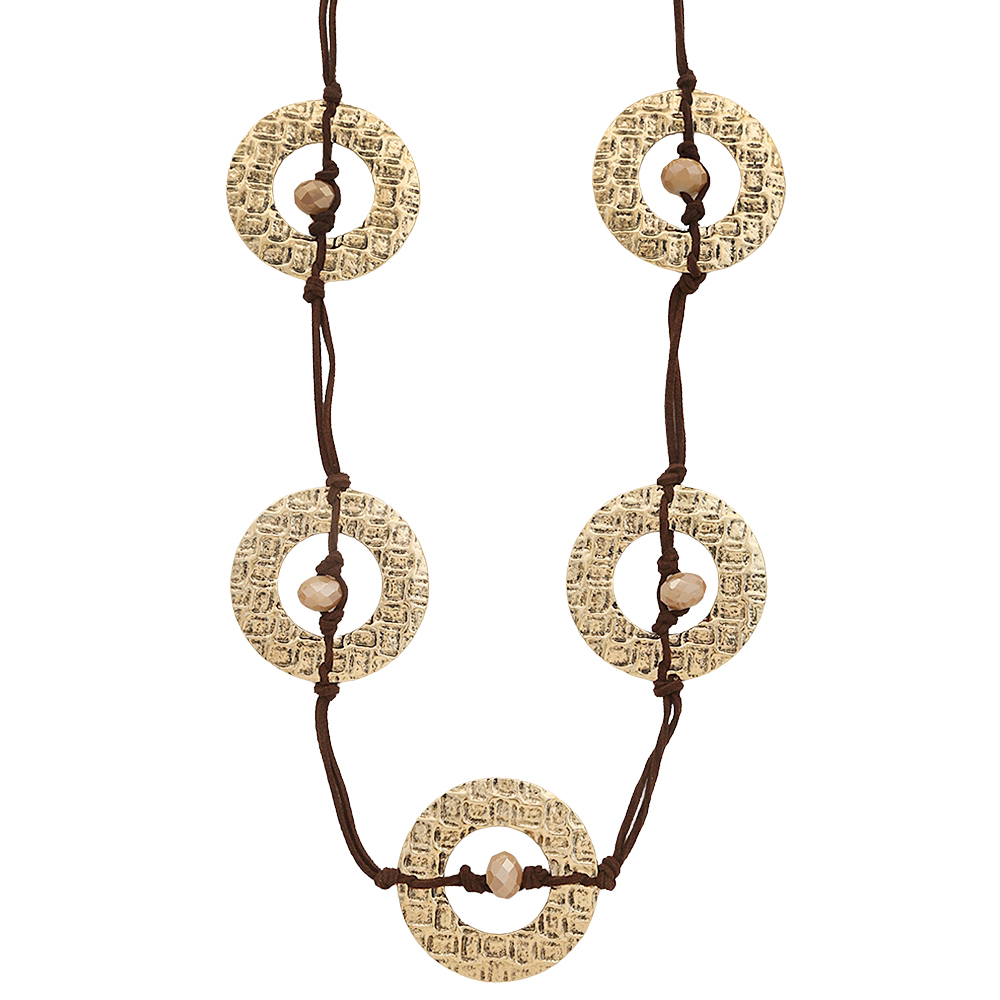 TEXTURED OPEN ROUND DESIGN STRING NECKLACE