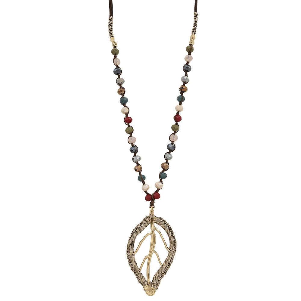 LEAF METAL PENDANT COLORFUL BEAD NECKLACE