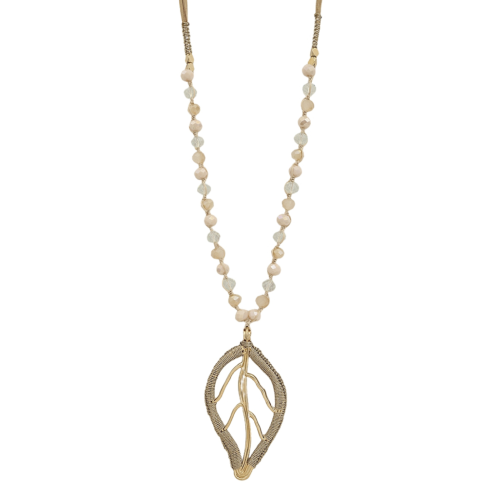 LEAF METAL PENDANT BEAD NECKLACE