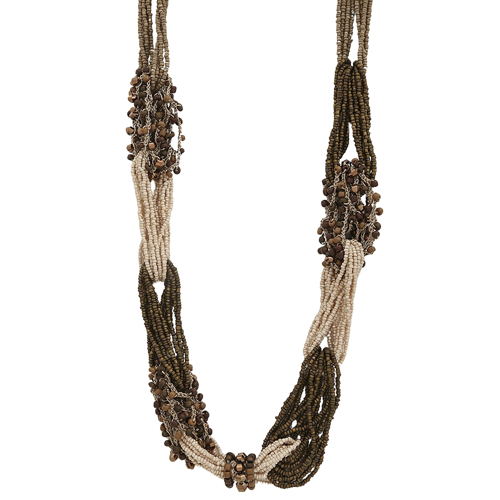 TWO TONE MULTI STRAND LAYER BEAD NECKLACE