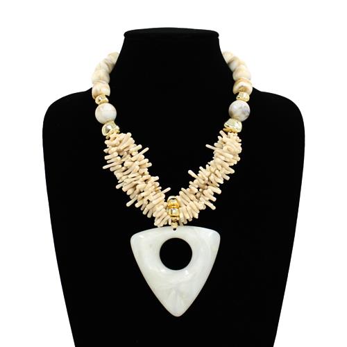 RESIN SHELL LINK RAFFIA LINE STATEMENT NECKLACE