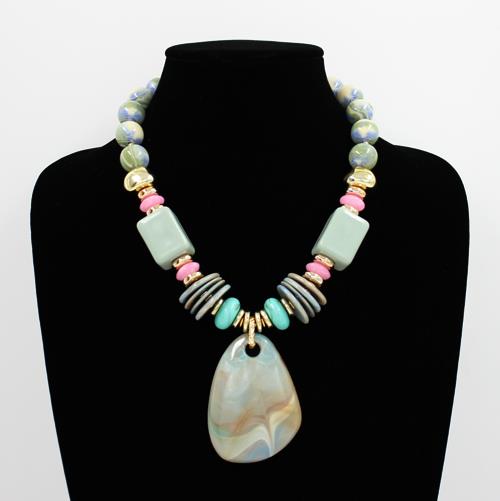 RESIN BEADED PENDANT STATEMENT NECKLACE