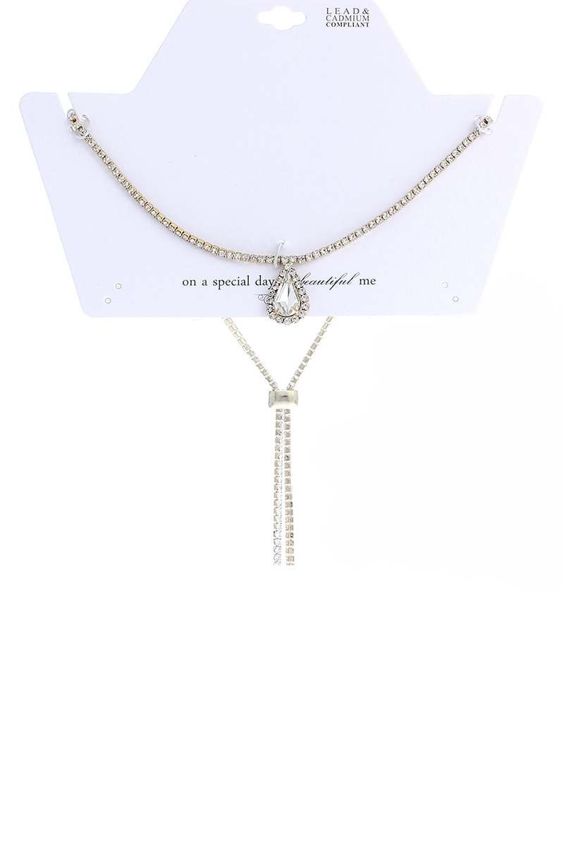 RHINESTONE CUBIC ZIRCONIA TEARDROP Y CHOKER