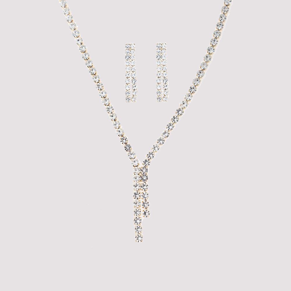 V SHAPE RHINESTONE NECKLACE AND BRACELET SET