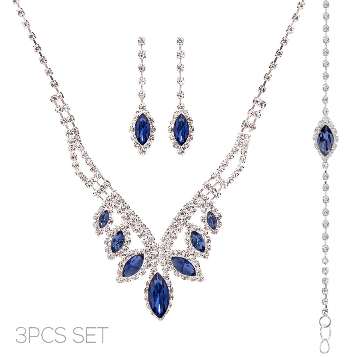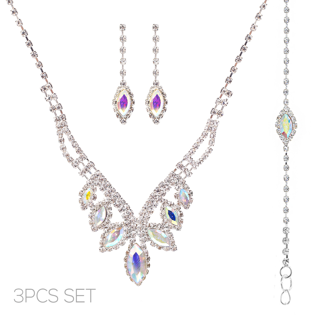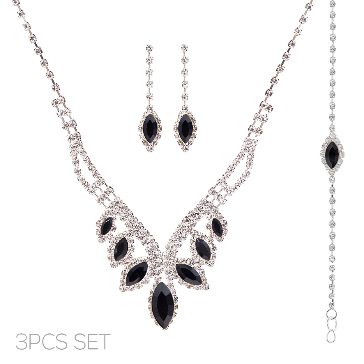 RHINESTONE MARQUISE NECKLACE EARRING BRACELET 3PC SET