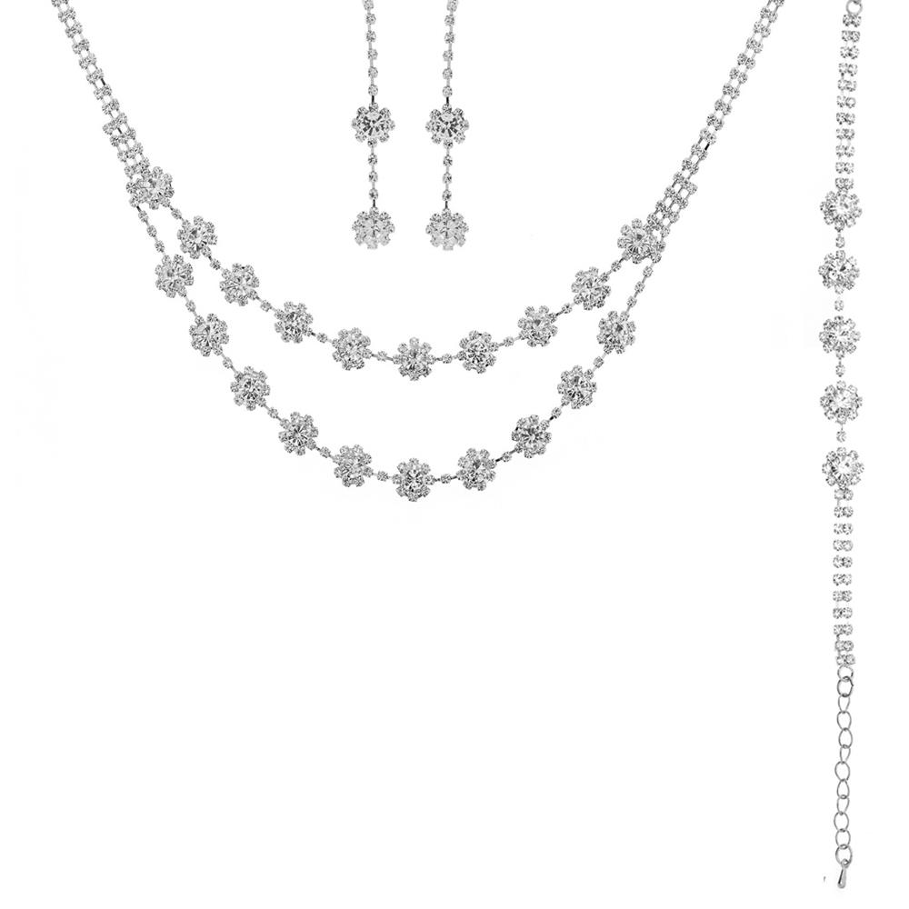 RHINESTONE DOUBLE ROW NECKLACE EARRINGS SET