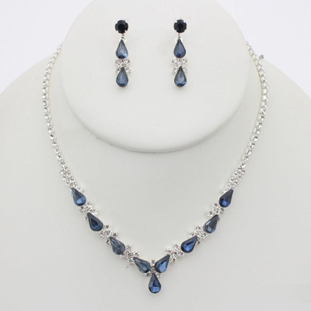 RHINESTONE TEARDROP NECKLACE EARRING SET