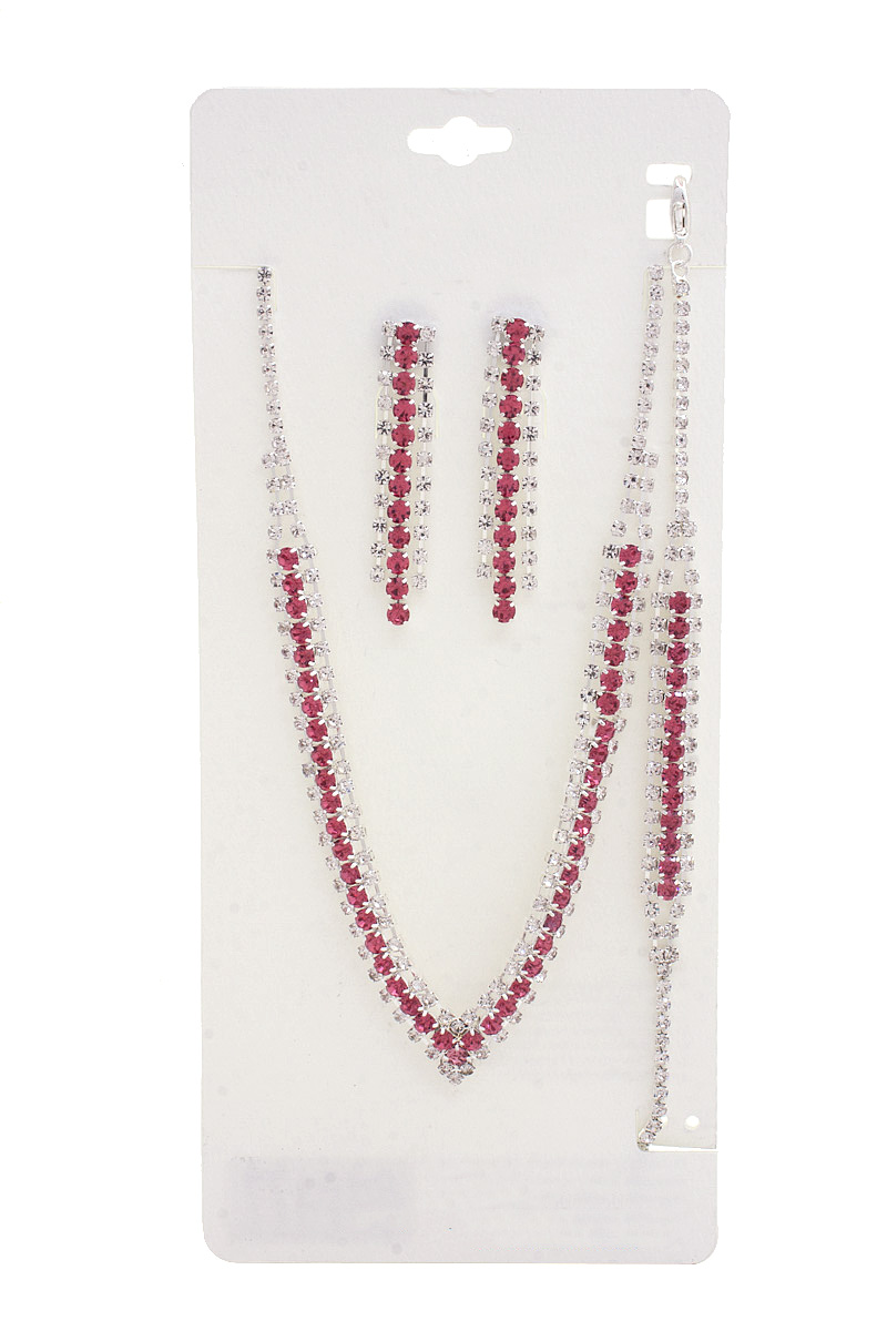 RHINESTONE TEARDROP ROUND 3PC NECKLACE EARRING BRACELET SET