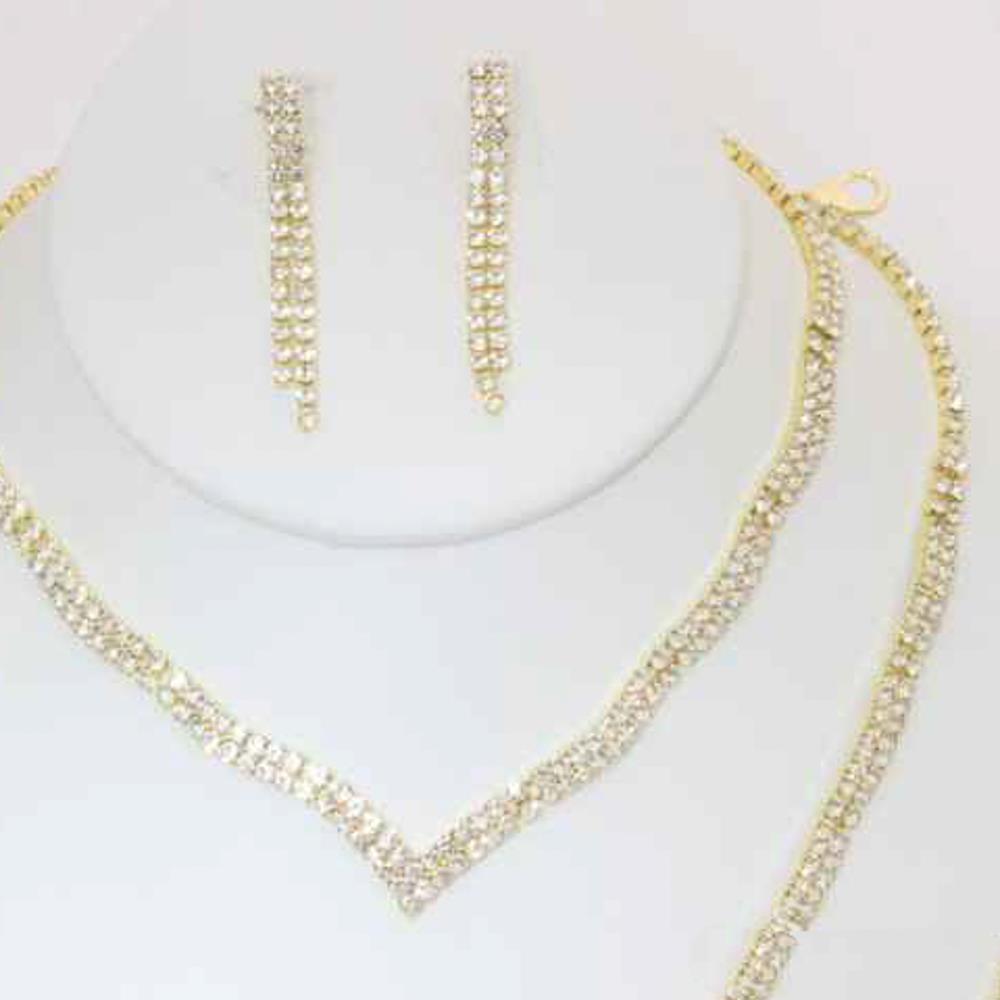 RHINESTONE V FRINGE NECKLACE EARRING BRACELET SET