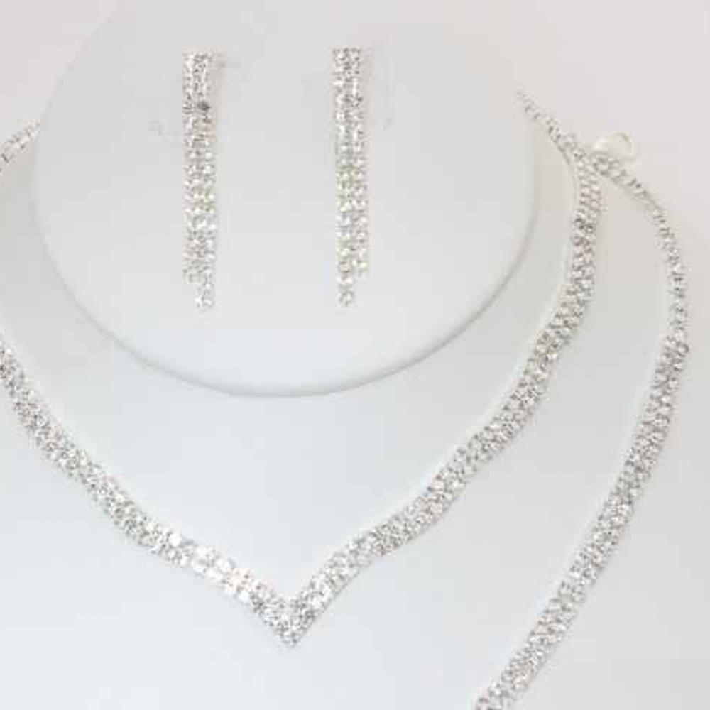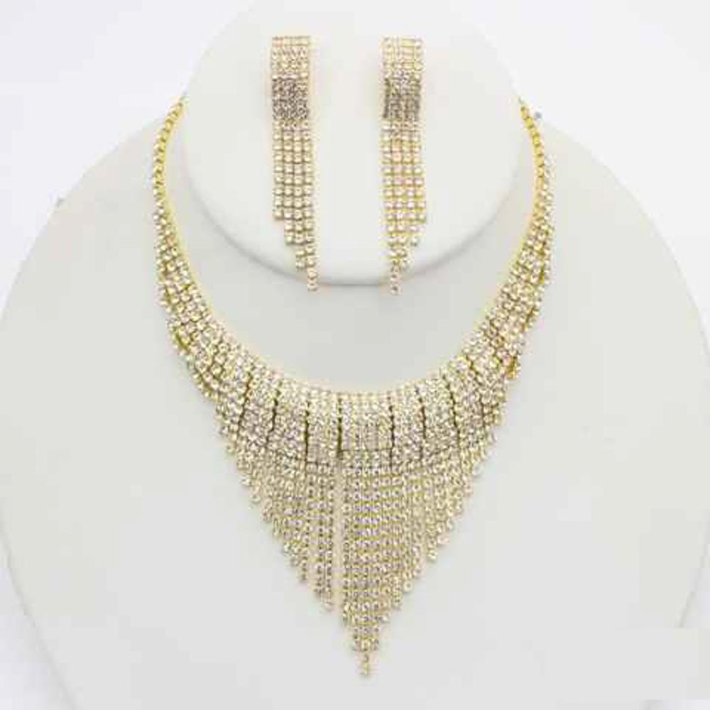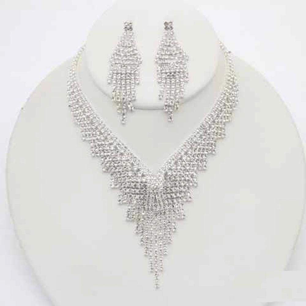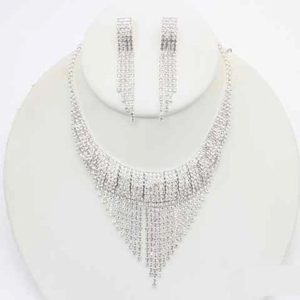 RHINESTONE CLASSIC DROP NECKLACE EARRING SET