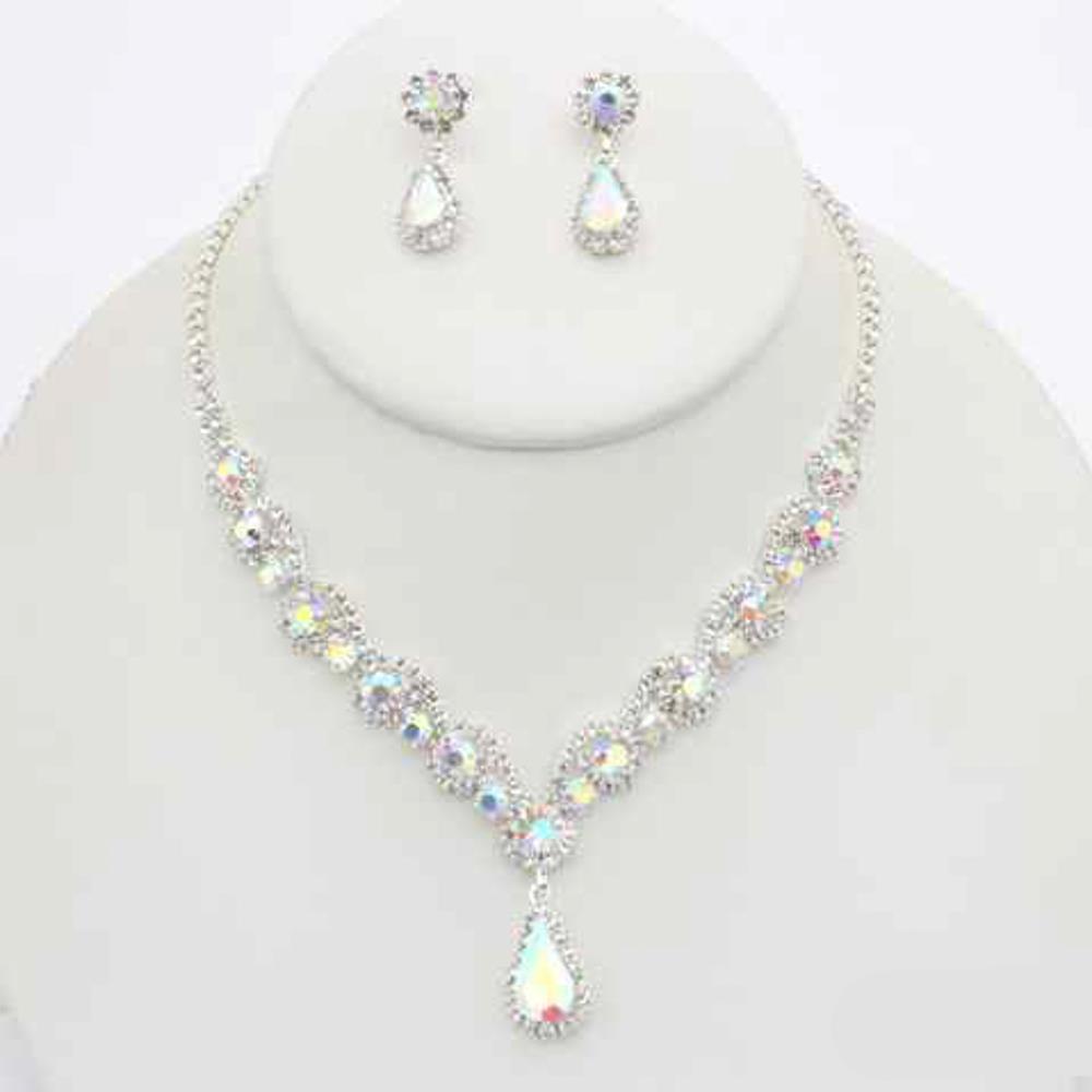 RHINESTONE IRIDESCENT DROP NECKLACE EARRING SET