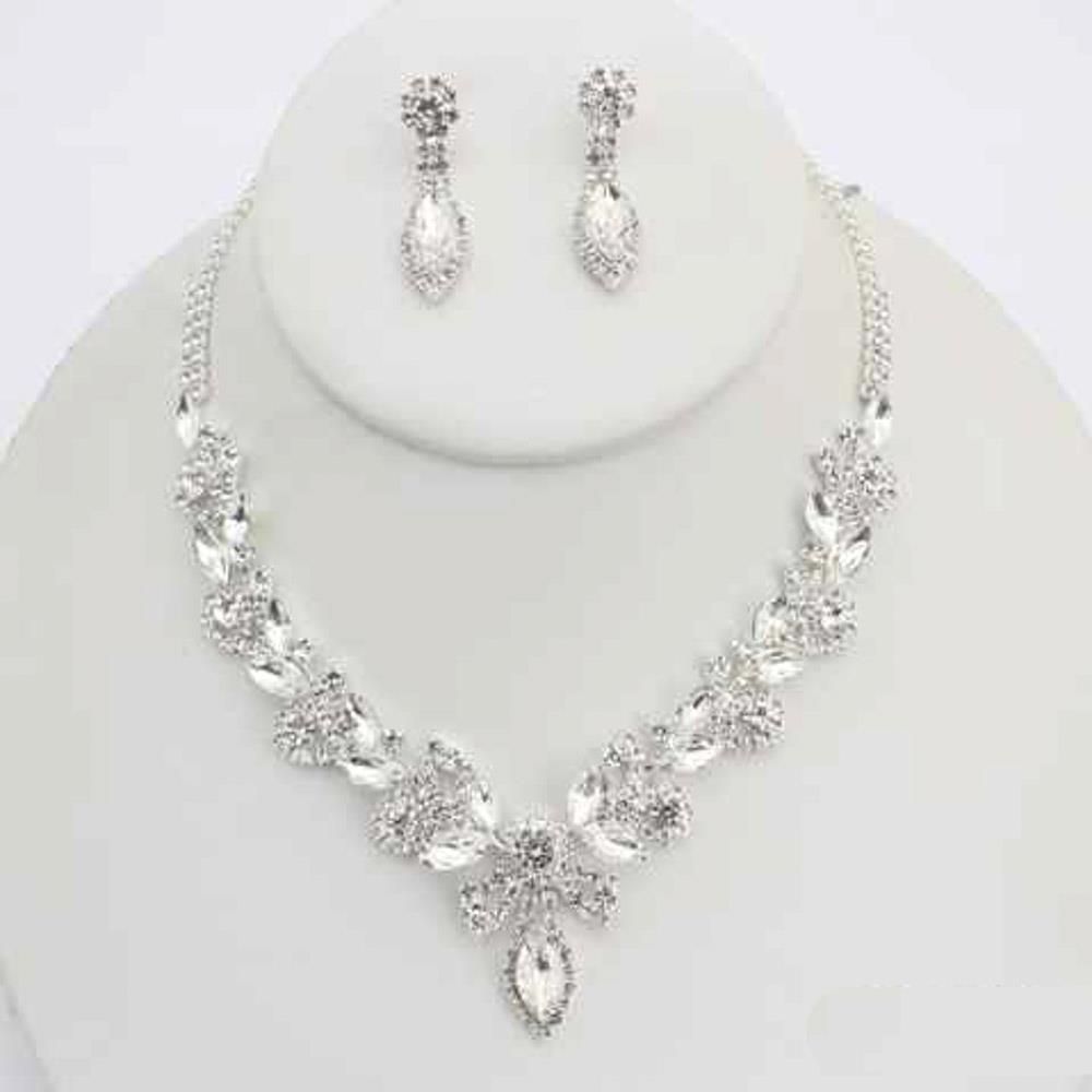MARQUISE RHINESTONE NECKLACE EARRING SET