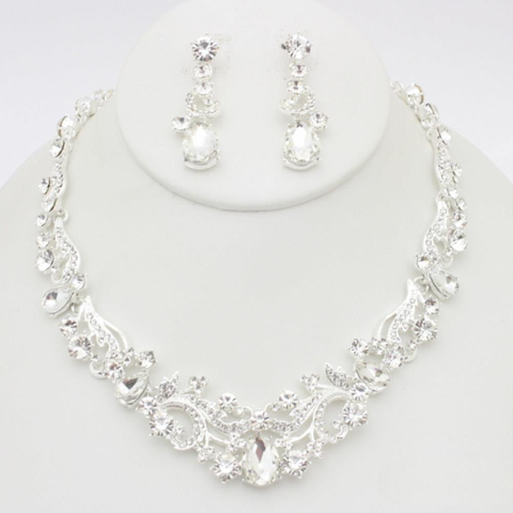 RHINESTONE TEARDROP NECKLACE EARRING SET