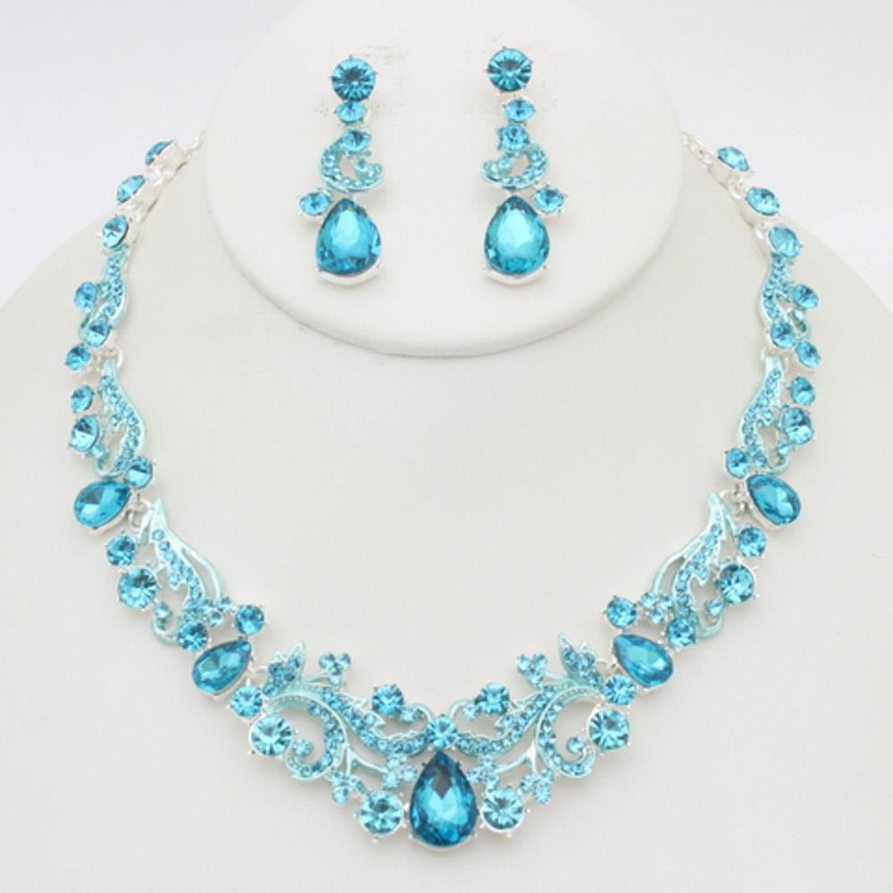 CRYSTAL STONE TEARDROP ORNAMENT NECKLACE EARRING SET
