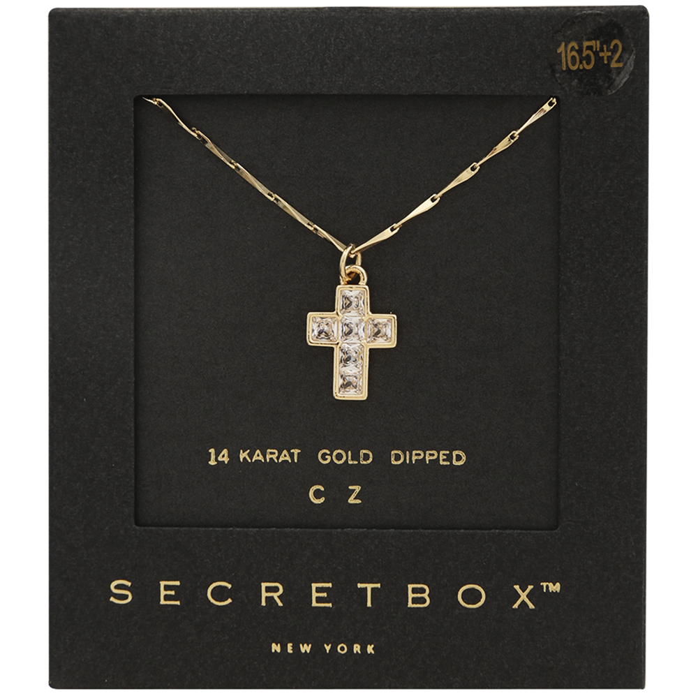SECRET BOX 14K GOLD DIPPED CROSS NECKLACE