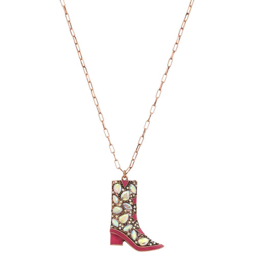 WESTERN COWBOY BOOT RHINESTONE PENDANT NECKLACE